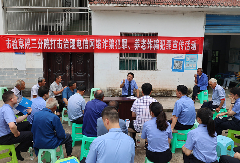 活动以院坝会的形式开展,三合村老党员杨幼明为青年干警和当地村民讲了专题党课,检察二部检察官张杰进行了打击治理电信网络诈骗犯罪、养老诈骗犯罪宣讲。