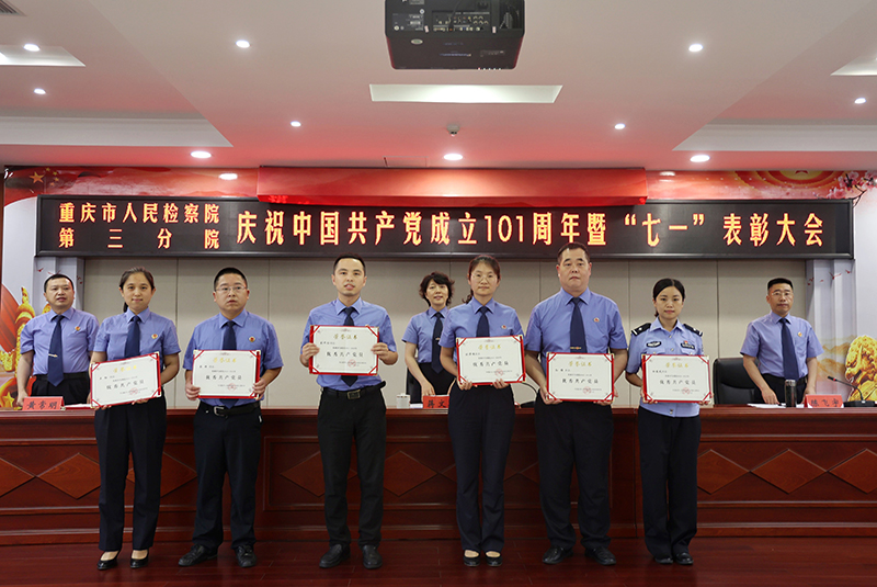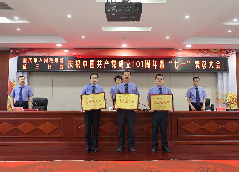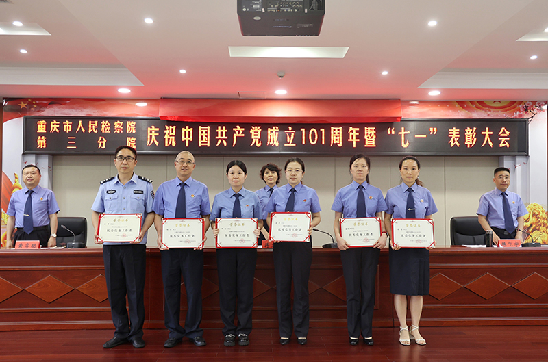6月30日下午,我院召开庆祝建党101周年暨“七一”表彰大会。院党组书记、检察长蒋文军出席会议,全院干警职工参加会议。大会对2021—2022年机关3个先进党支部、19名优秀共产党员、6名优秀党务工作者进行了表彰。“先进党支部”“优秀共产党员”“优秀党务工作者”代表向大会作了先进事迹报告。