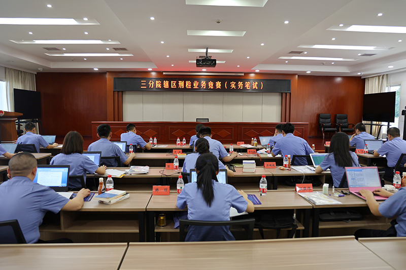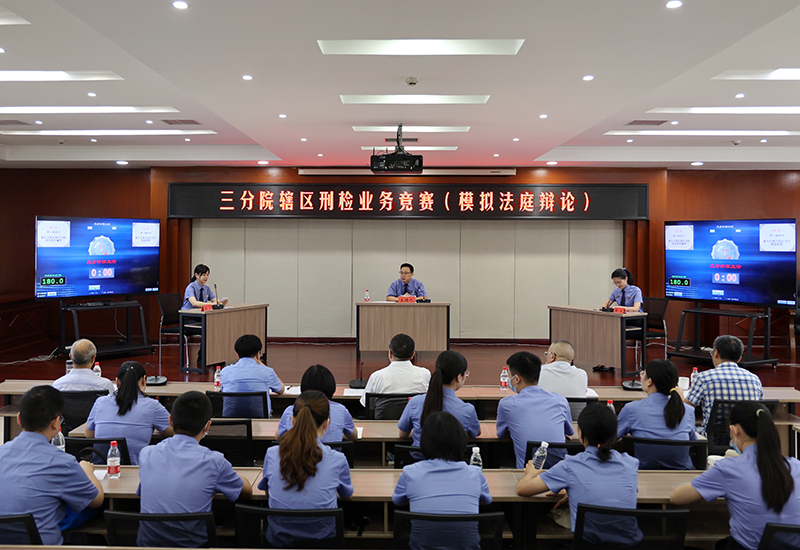 为进一步提升辖区刑事检察队伍素质能力,选拔和培养刑事检察优秀人才,8月22日至25日,我院举办三分院辖区刑检业务竞赛。辖区两级院19名选手参加了刑事检察内卷评审、理论笔试、业务笔试、业务答辩、模拟法庭论辩等5个环节的角逐。经过四天体力和智力的考验,各院优秀选手脱颖而出。本次竞赛分别评出一等奖1 名、二等奖2名、三等奖3名以及单项奖4项,西南政法大学教授潘金贵就选手表现等作出精彩点评。
