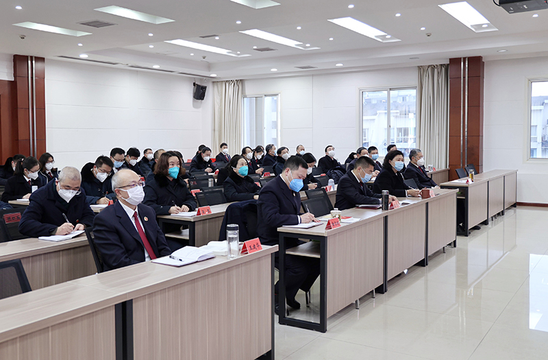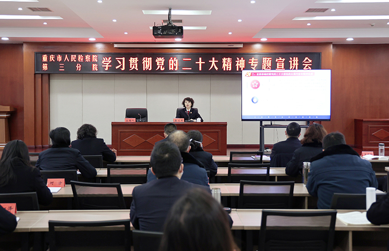 1月5日,我院召开学习贯彻党的二十大精神专题宣讲会暨2023年第1次党组理论学习中心组(扩大)学习会,全市检察机关学习贯彻党的二十大精神宣讲团成员、院党组书记、检察长蒋文军以“以法律监督现代化保障中国式现代化”为题,为全体干警作专题宣讲。院党组副书记、副检察长陈飞宇主持会议,院党组成员、检委会专职委员,全体干警参加会议。