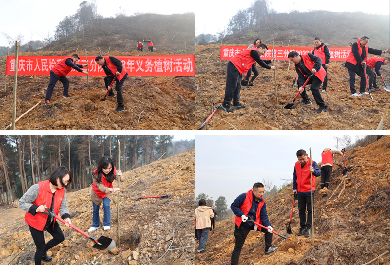 3月9日,在第45个植树节来临之际,我院联合涪陵区荔枝街道办事处,组织干部职工前往涪陵区大梁山开展了义务植树活动,积极践行“绿水青山就是金山银山”理念。