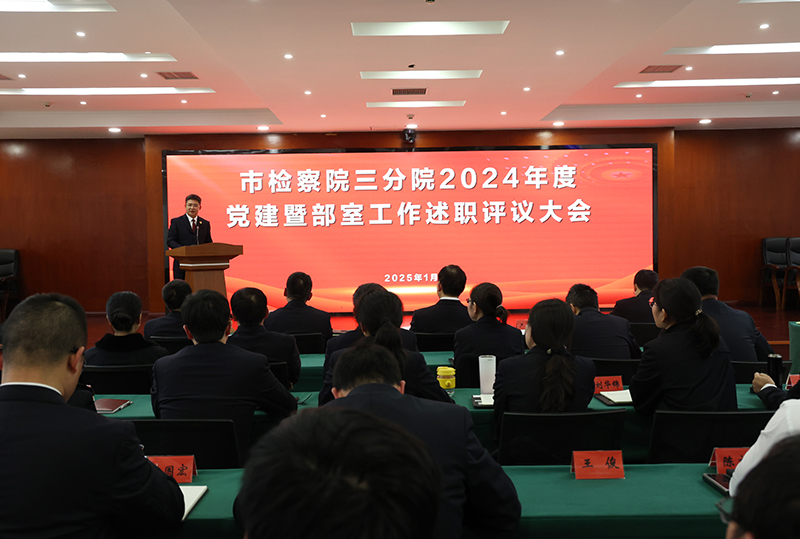 1月16日,我院召开2024年度党建暨部室工作述职述廉评议会。会上,办公室党支部等14个党支部书记及部室负责人逐一登台进行现场述职,派驻涪陵监狱检察室等3个部室进行书面述职并接受评议。院领导班子成员,检委会专职委员,二级高级检察官,二级巡视员及全体干警参加会议。院党组成员、政治部主任严辉主持会议。