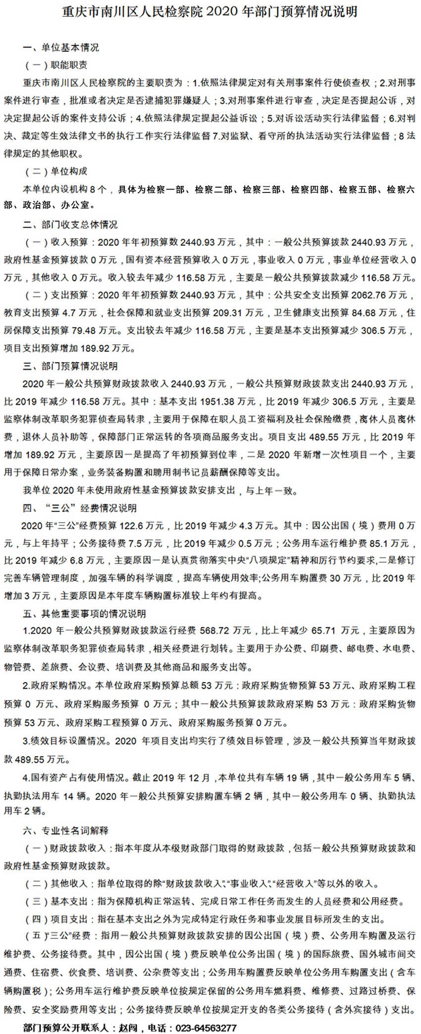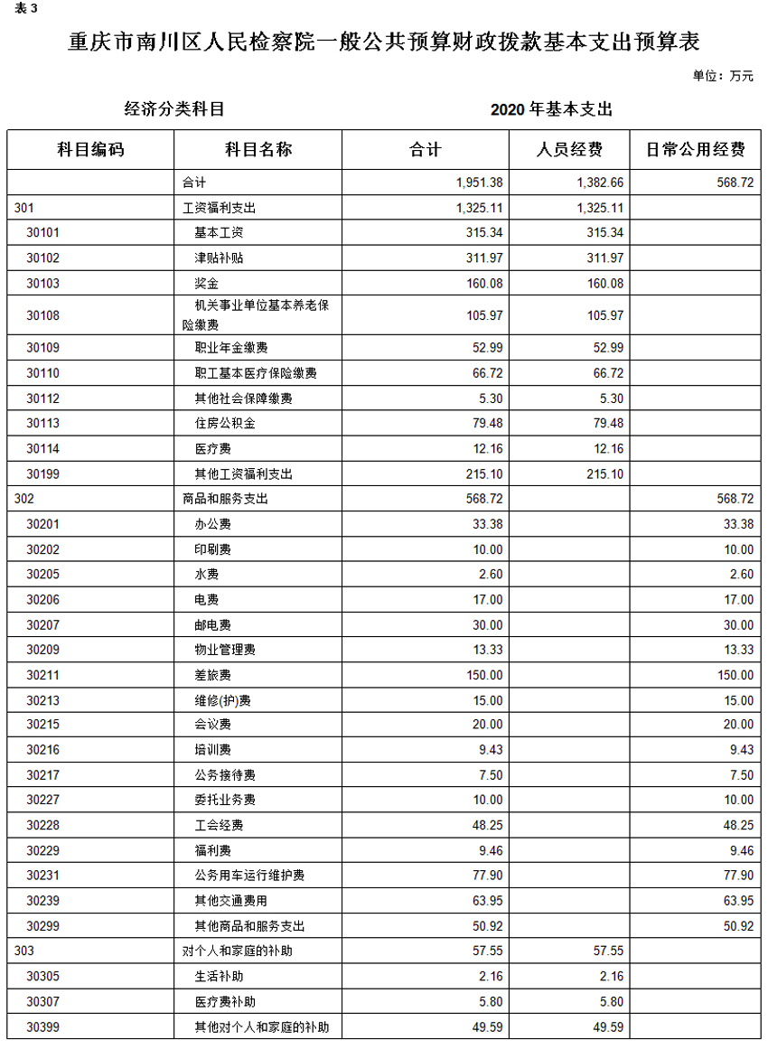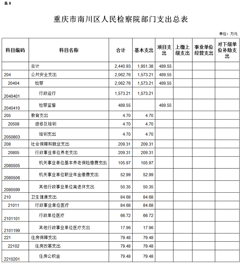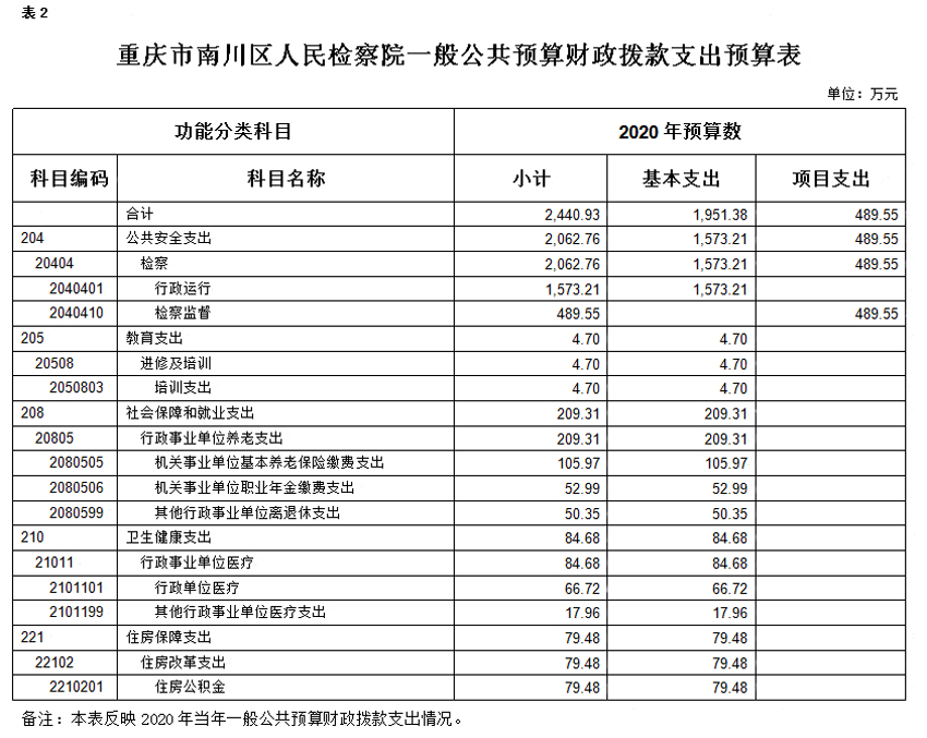 重庆市南川区人民检察院2020年度部门预算情况公开