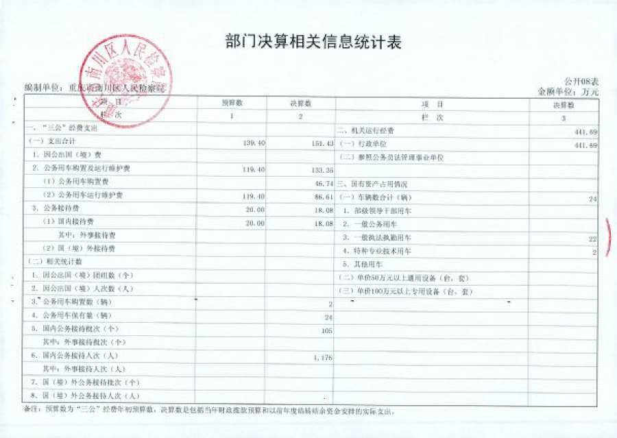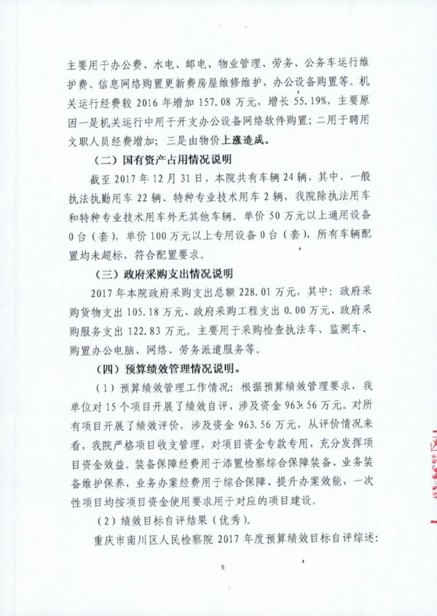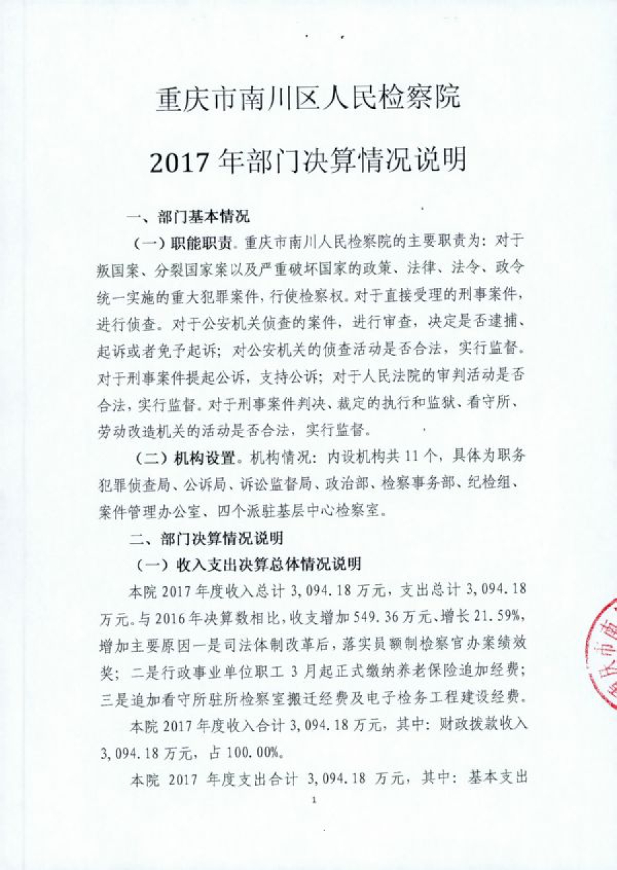 重庆市南川区人民检察院2017部门决算情况说明