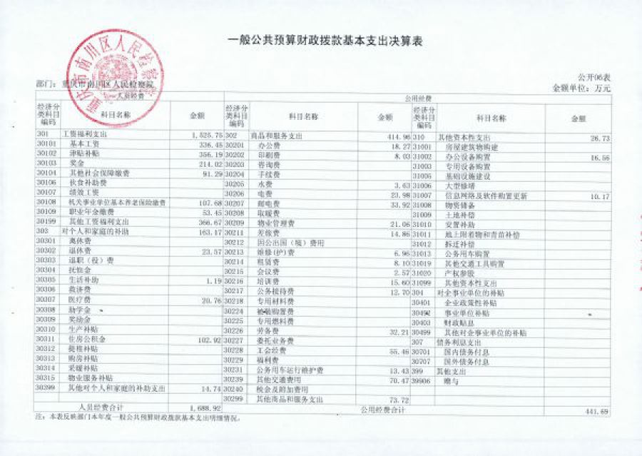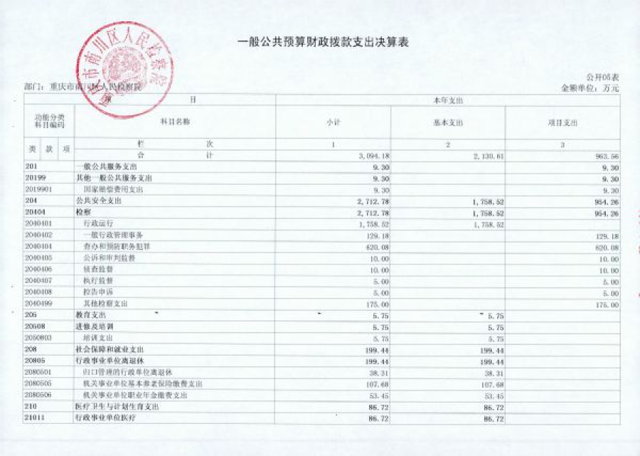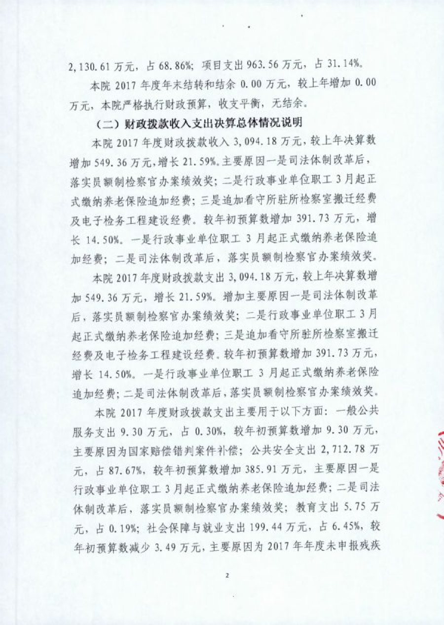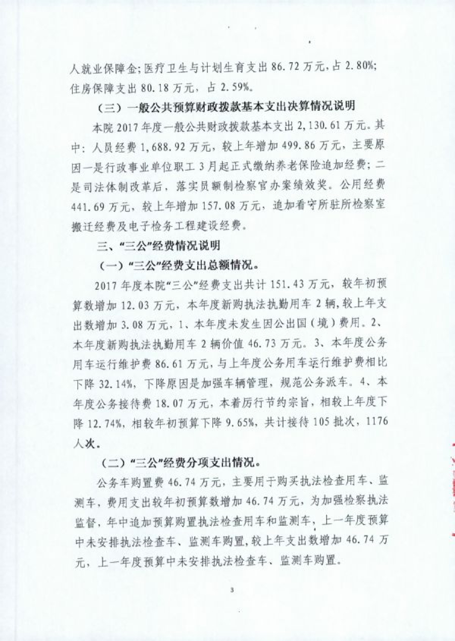 重庆市南川区人民检察院2017部门决算情况说明