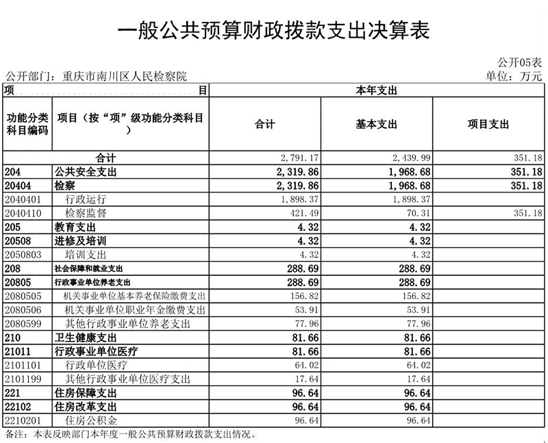 (三)单位构成。从预算单位构成看,纳入本部门2022年度决算编制的二级项目预算单位主要包括重庆市南川区人民检察院,无下级预算单位。