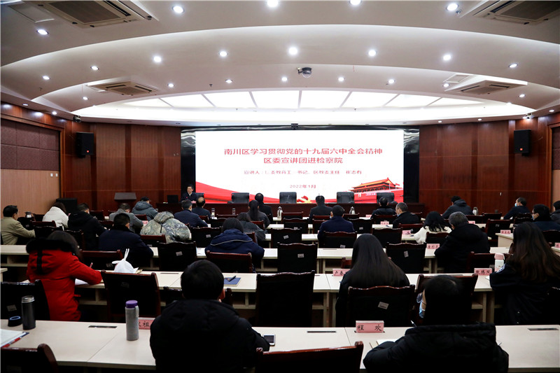 近日,区委宣讲团成员、区委教育工委书记、区教委主任崔志有到我院宣讲十九届六中全会精神。我院党组成员、政治部主任杨若愚主持会议,全体干警参加。