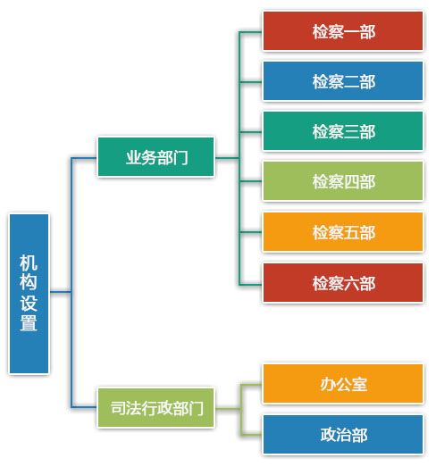 检察六部:负责案件管理、法律政策研究、人民监督工作以及控告申诉举报事项受理、刑事申诉案件办理、国家赔偿案件办理等工作。