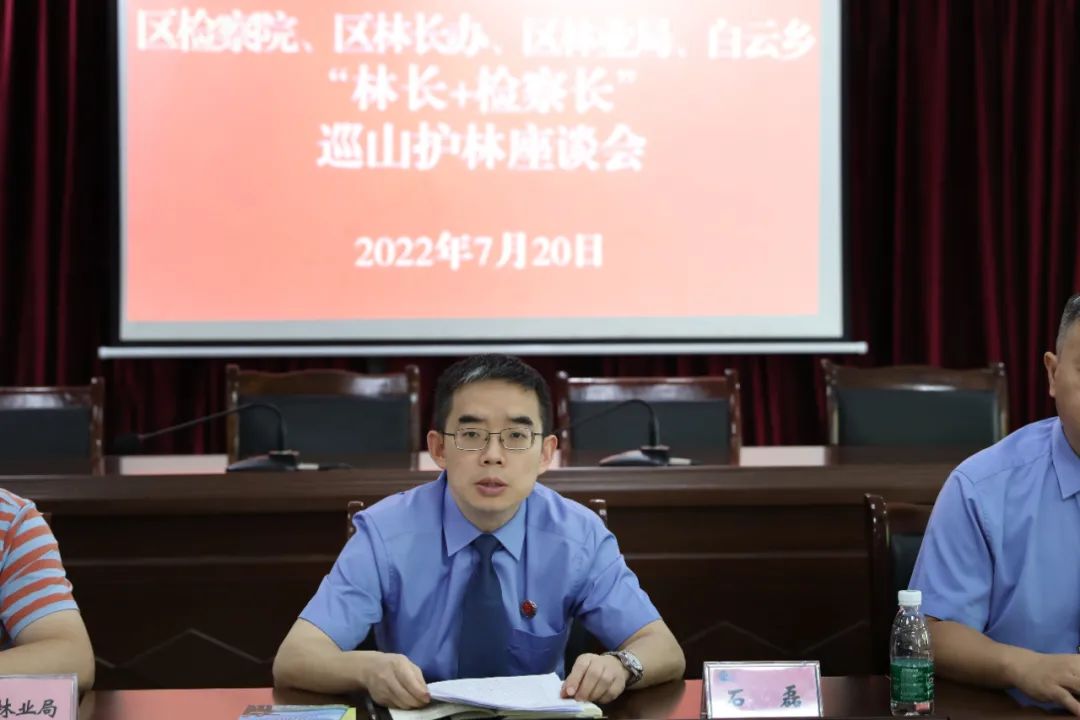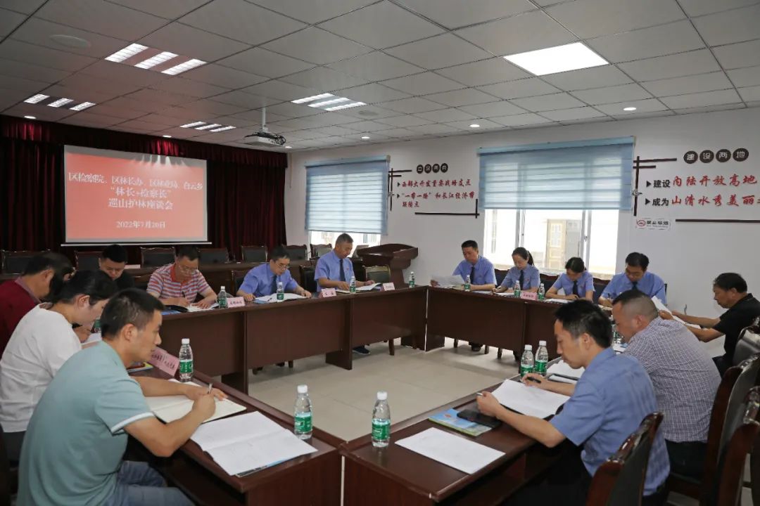 在随后召开的座谈会上,白云乡党委书记梁永胜介绍了该乡近几年巡山护林及生态保护的工作情况,区检察院检察五部负责人黄坤峰介绍了该院开展公益诉讼生态环境保护的相关情况。与会人员对建立“林长+检察长”工作机制和公益诉讼检察工作予以充分肯定,并结合通报内容及个人职业特点,从不同角度为生态环境保护公益诉讼检察工作积极建言献策。