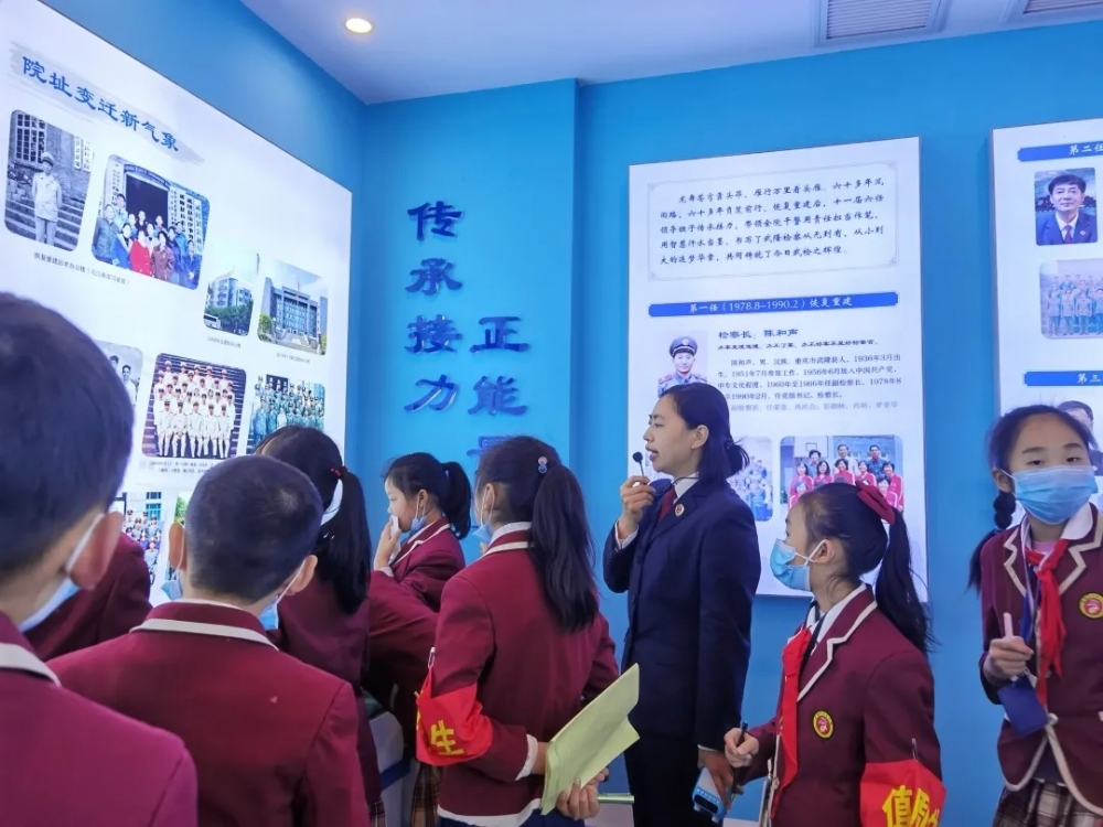 在法治实践课中,“莎姐”检察官带领学生们实地参观法治文化大厅、检察文化长廊、青少年法治教育展馆、法治产品陈列室、“莎姐”未检工作室、模拟法庭等场所,让学生们感受法治知识带来的精神洗礼。
