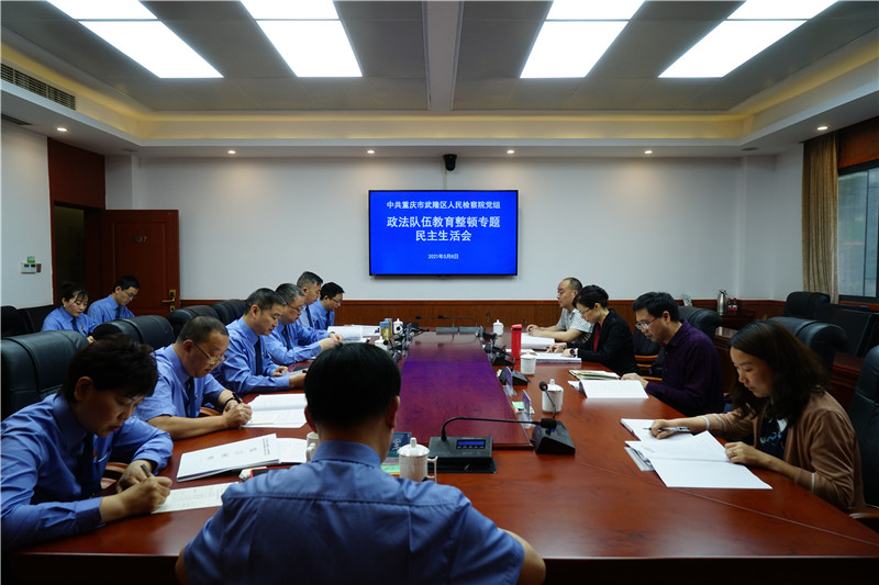 5月8日上午,武隆区检察院召开政法队伍教育整顿专题民主生活会。院党组书记、检察长、院队伍教育整顿领导小组组长程晋意主持会议。市政法队伍教育整顿第二指导组成员胡传银、市检察院第三分院政治部主任秦梅影、区委政法委常务副书记吕刚到会督导指导,市检察院第三分院政治部干部人事室副主任蒋黎、院检委会专职委员列席会议。院全体党组成员参加会议。
