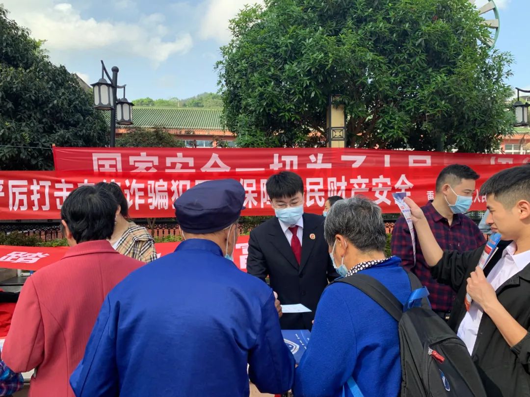 4月13日,在“4·15”全民国家安全教育日来临之际,武隆区检察院检察一部、检察二部就“全面反诈”、“保护知识产权”开展联合普法宣传活动。