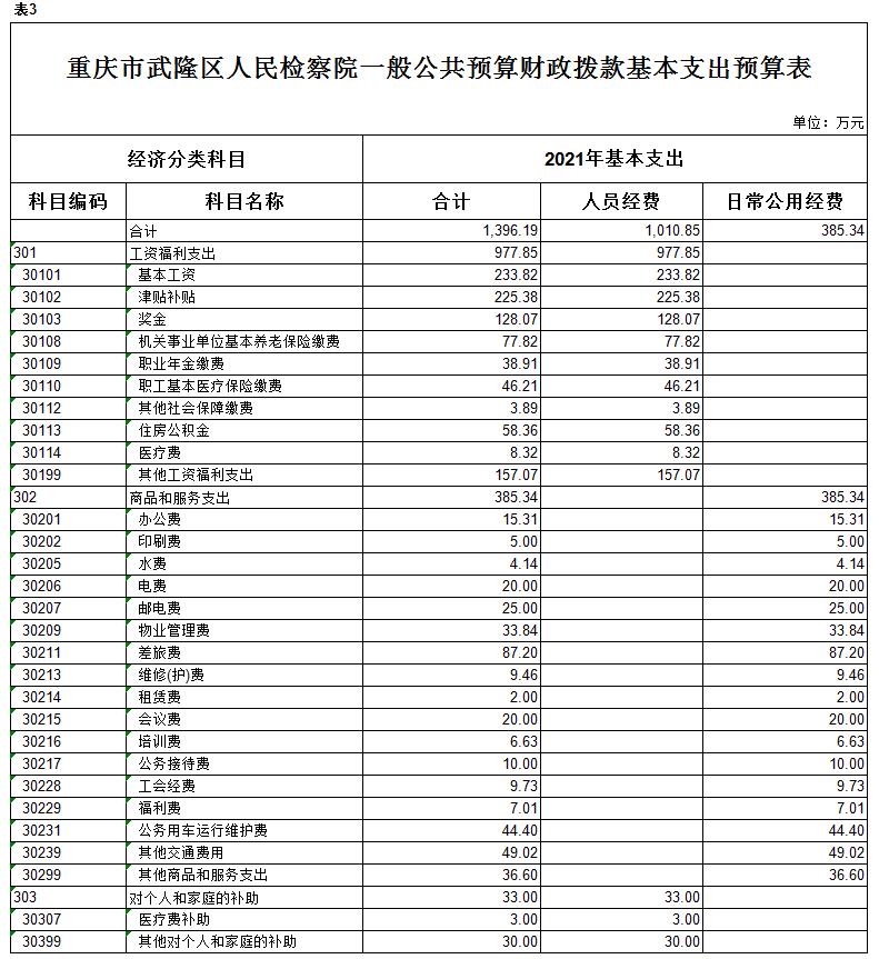 重庆市武隆区人民检察院2021年部门预算情况说明