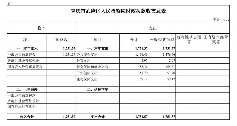 重庆市武隆区人民检察院2022年部门预算情况说明