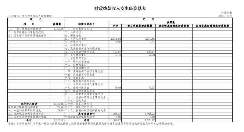 2022年度财政拨款收、支总计1,970.22万元。与2021年相比,财政拨款收、支总计各减少13.53万元,下降0.7%。主要原因是人员经费减少,2022年年末实际在岗干警较2021年较少3人。