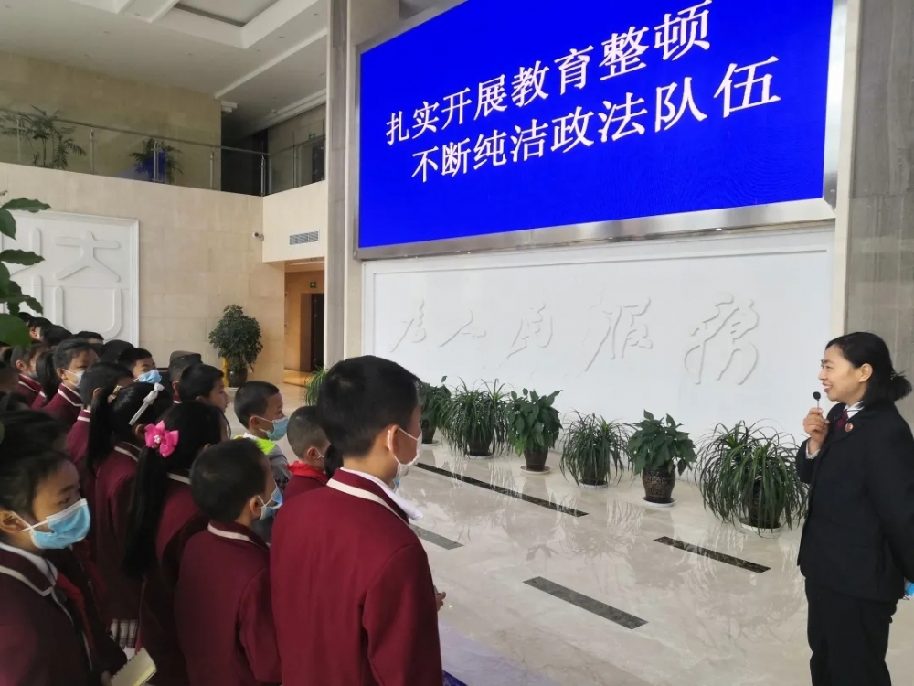 在法治实践课中,“莎姐”检察官带领学生们实地参观法治文化大厅、检察文化长廊、青少年法治教育展馆、法治产品陈列室、“莎姐”未检工作室、模拟法庭等场所,让学生们感受法治知识带来的精神洗礼。