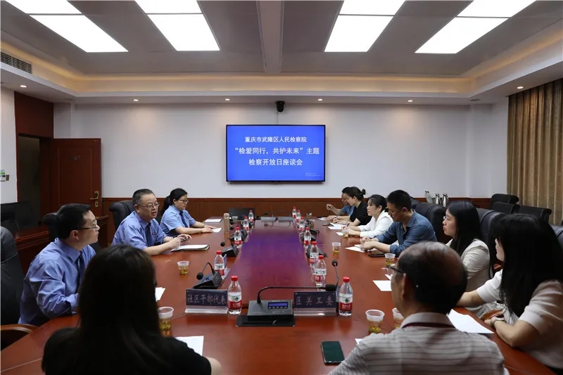 参观结束后,该院随即召开“检爱同行共护未来”主题检察开放日座谈会。会上,与会人员观看了侵害未成年人案件强制报告公益宣传片《聚光》。随后,分别从涉未案件分析、与相关部门联合开展工作情况、武隆区法治教育全覆盖、建立未成年被害人救助机制等方面,通报了该院未成年人检察工作情况。在听取完报告后,与会代表纷纷对该院未成年人检察工作表示肯定,并从加大未成年人法治宣传、加强部门联动、完善基层干部法治教育培训等方面提出了宝贵的意见建议。