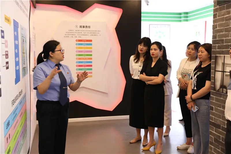 活动开始,在“莎姐”检察官的带领下,与会人员参观了该院青少年法治教育实践基地。该基地以黄绿灯为主创意,运用声光电设计,将多个青少年喜闻乐见的互动项目穿插其间,通过以案说法、情景模拟、法治小游戏等形式,配以图文和“莎姐”检察官的全程解说,将教育性与趣味性深度融合,帮助青少年对法律知识有更加具体深刻的理解。