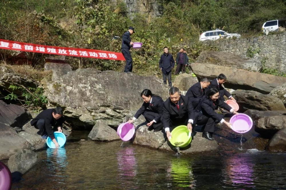 这是武隆区检察院会同当地农业农村委、公安局、生态环境局,根据近期一起电鱼案,联合开展的一次增殖放流活动。当日,在人大代表、人民监督员的见证下,2万余尾鱼苗被投放到木棕河。