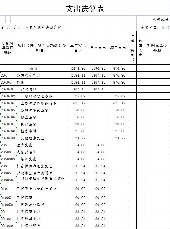 本部门2016年度财政拨款支出2,473.90万元,较上年决算数增加10.38万元,增长0.42%。较年初预算数增加352.14万元,增长16.60%。主要原因是增人增资、津贴提标、办理大要案等及使用以前年度财政拨款结转和结余资金。