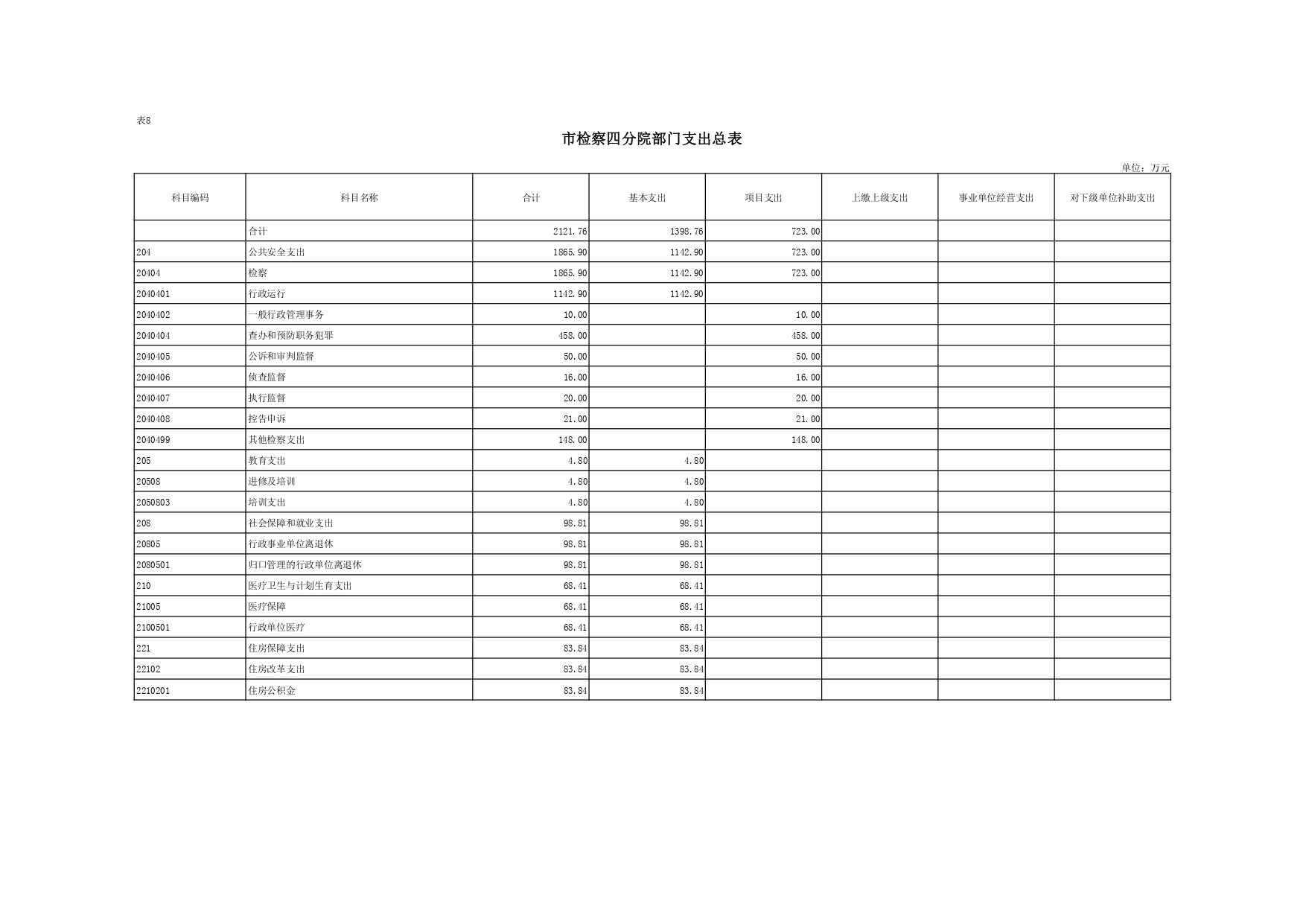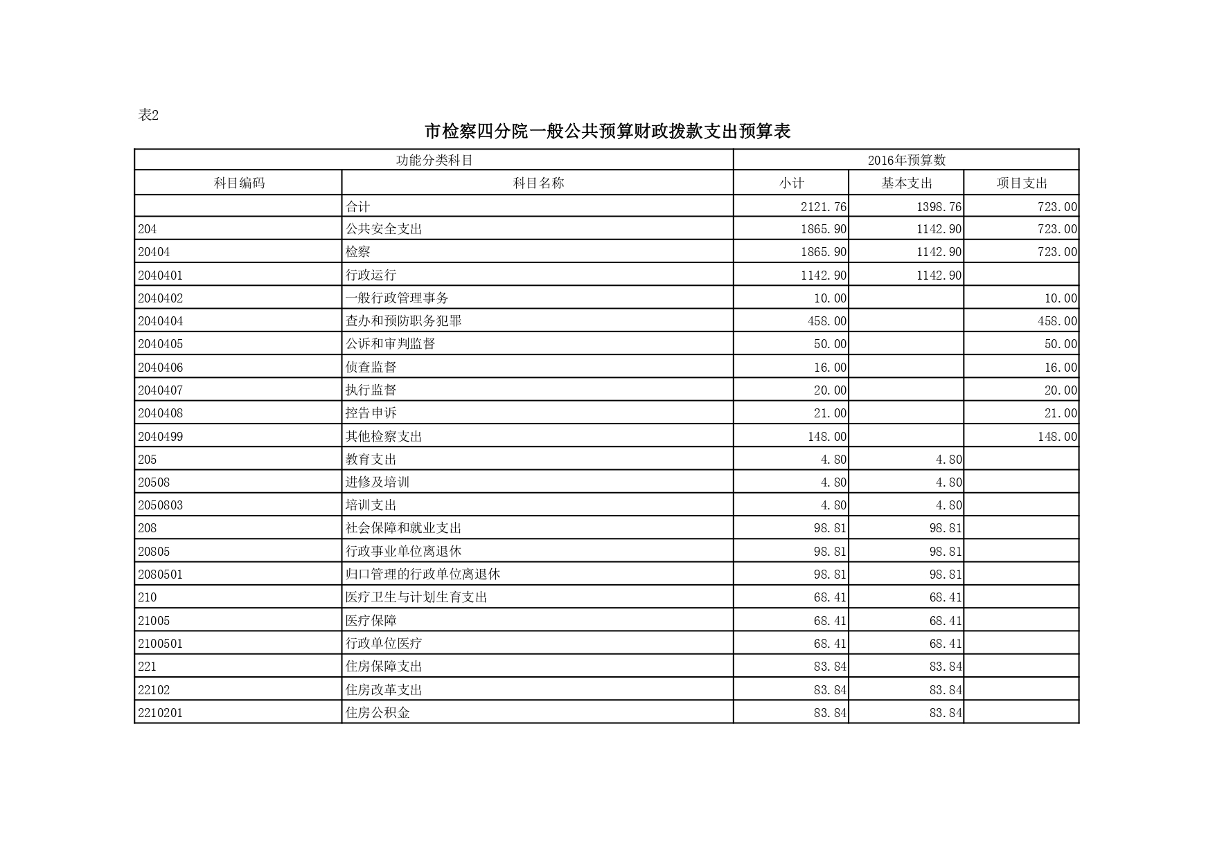 2016年一般公共财政拨款支出预算2121.76万元,比2015年增加296.14万元。一是基本支出按政策增支325.24万元,其中人员经费增支206.07万元,公用经费增支118.97万元;二是项目支出因调整“平安建设”专项经费等原因减少29.1万元
