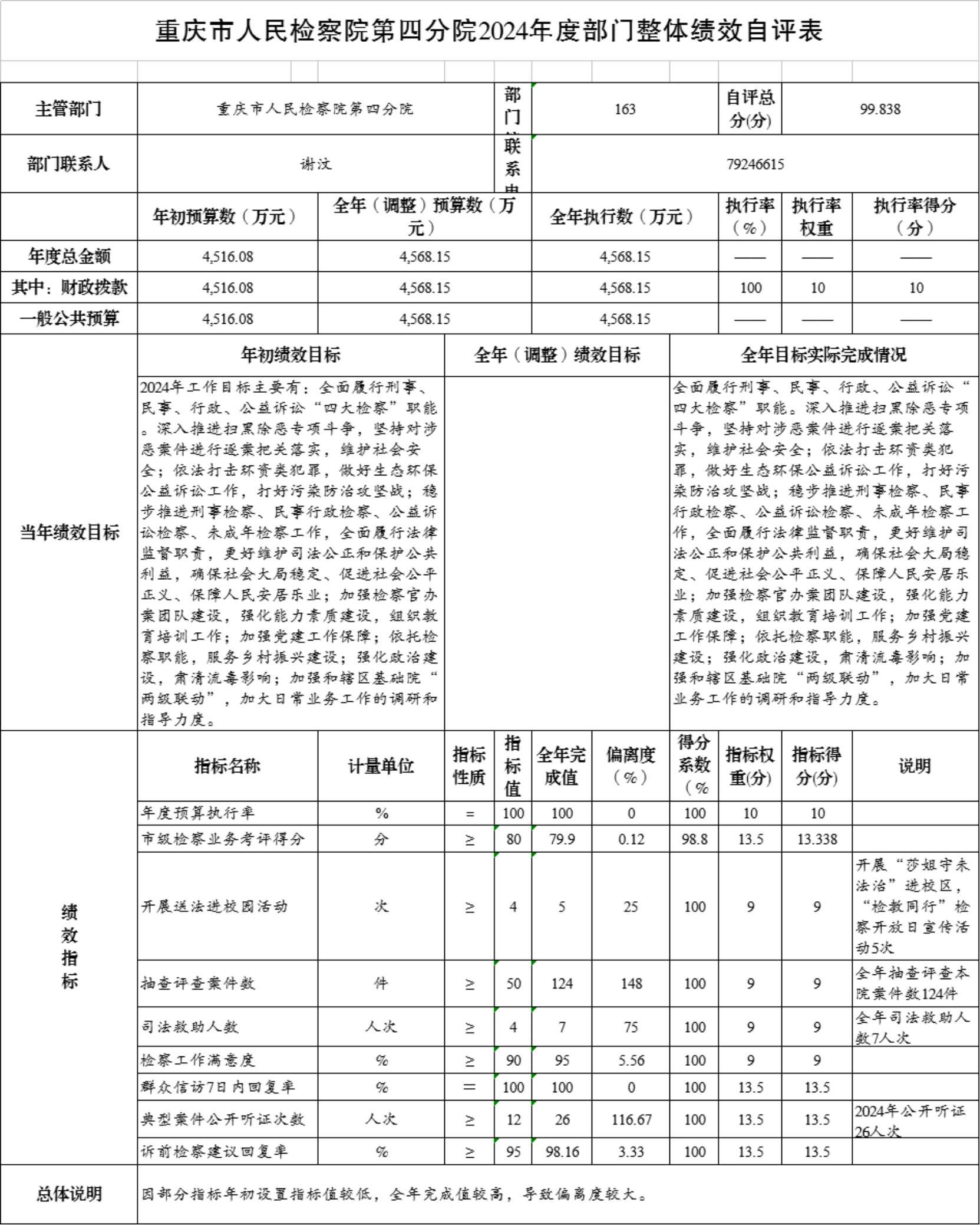 (一)部门自评情况