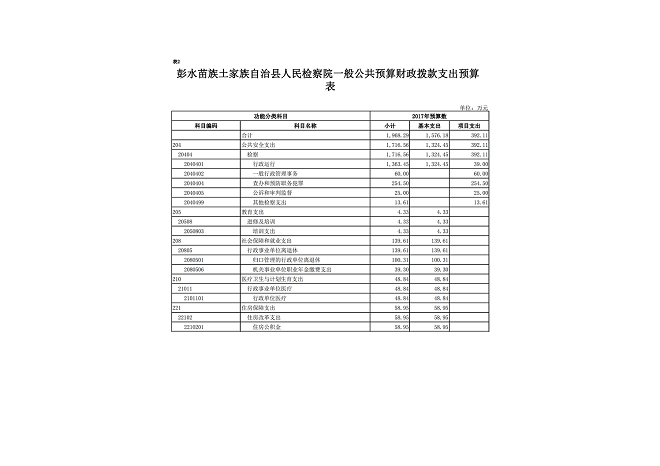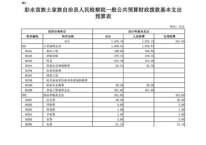 彭水苗族土家族自治县人民检察院2017年部门预算情况说明