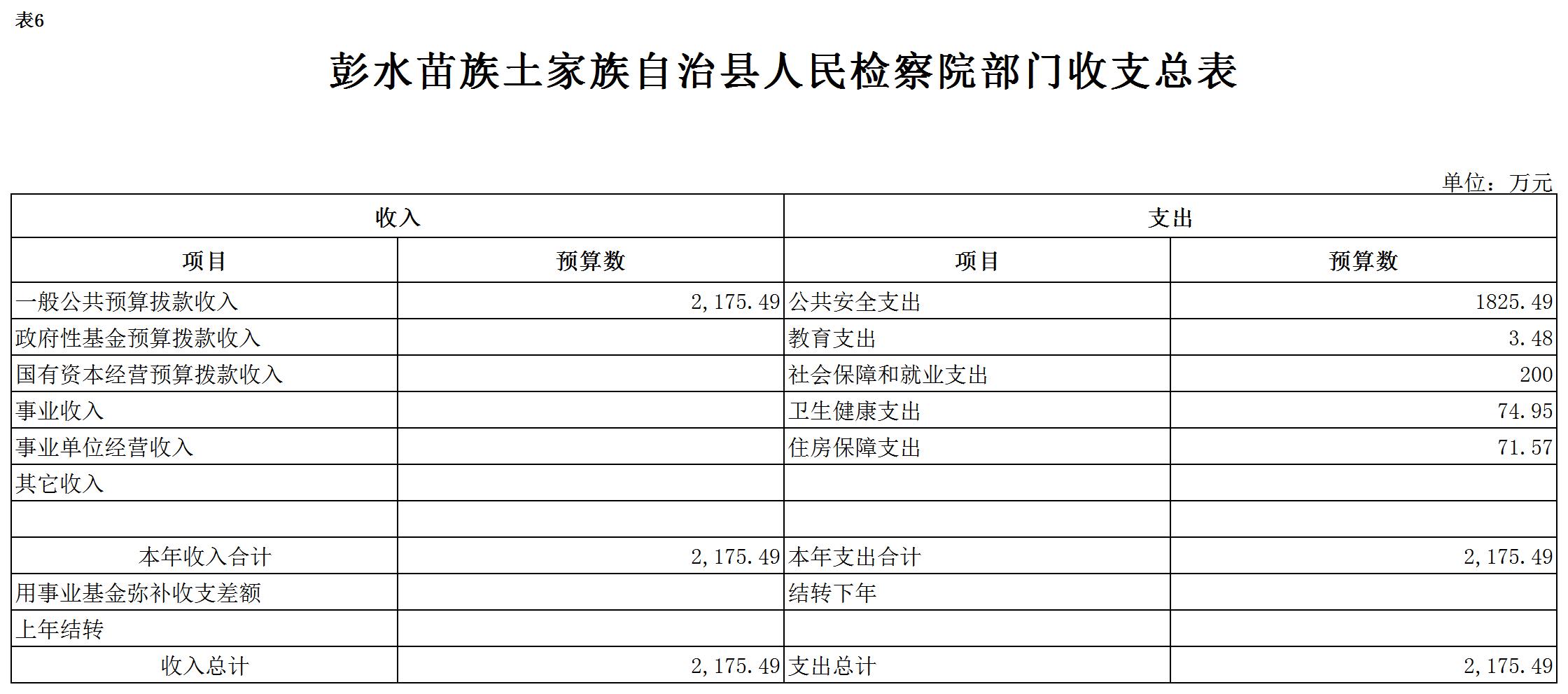 2019年一般公共预算财政拨款收入2175.49万元,一般公共预算财政拨款支出2175.49万元,比2018年增加322.05万元。其中:基本支出1681.85万元,比2018年增加95.61万元,主要原因是政策性人员经费增资,比2018增加133.74万元,国家监察体制改革,职务犯罪侦查局转隶,公用经费比2018减少38.13万元,基本支出总体增加,主要用于保障在职人员工资福利及社会保险缴费,保障部门正常运转的各项商品服务支出;项目支出493.64万元,比2018年增加226.44万元,主要原因:一是增加信息化建设项目资金,主要用于我院新办公楼弱电智能化工程建设,属一次性项目;二是增加公益诉讼专项经费,用于办案业务及重点工作支出。