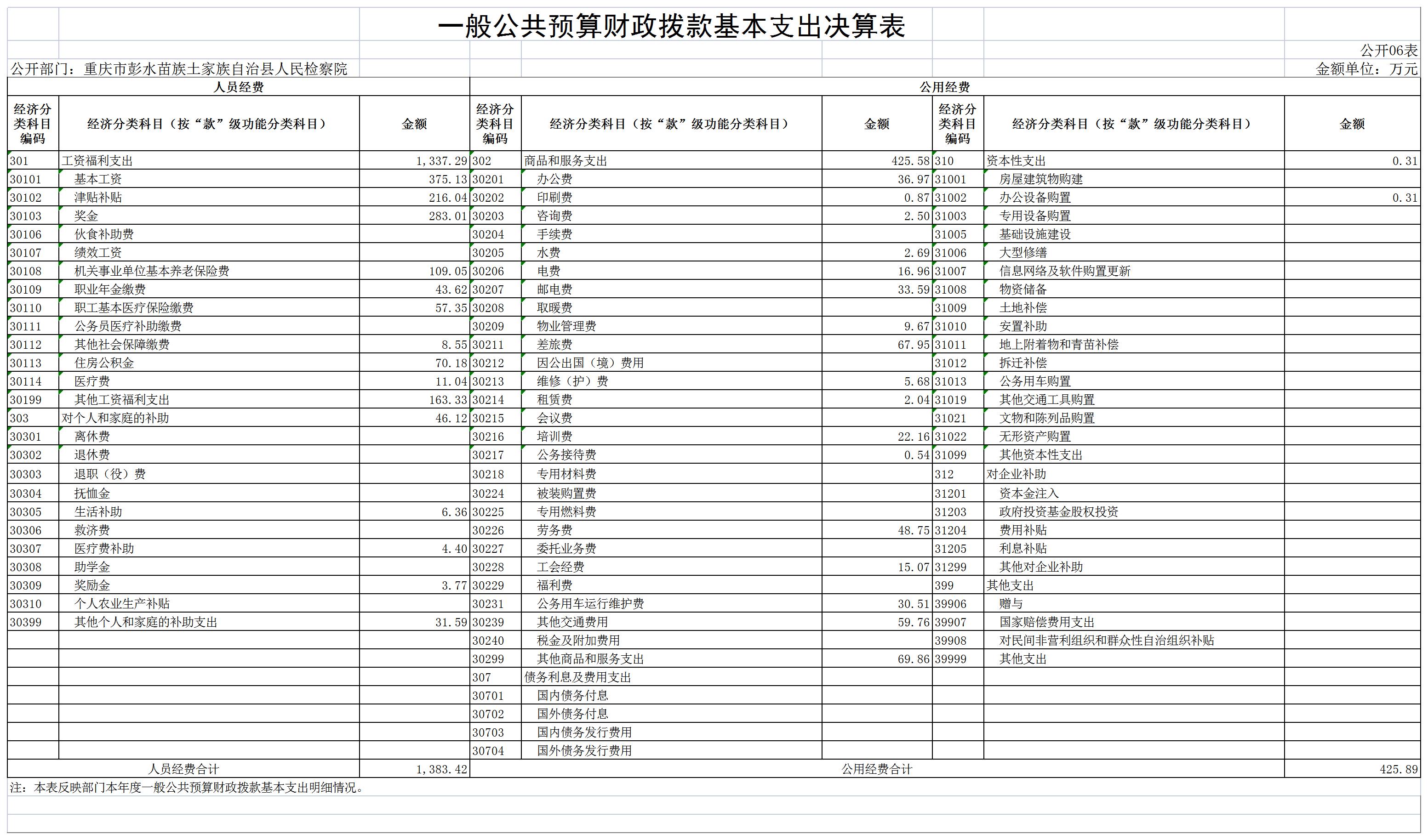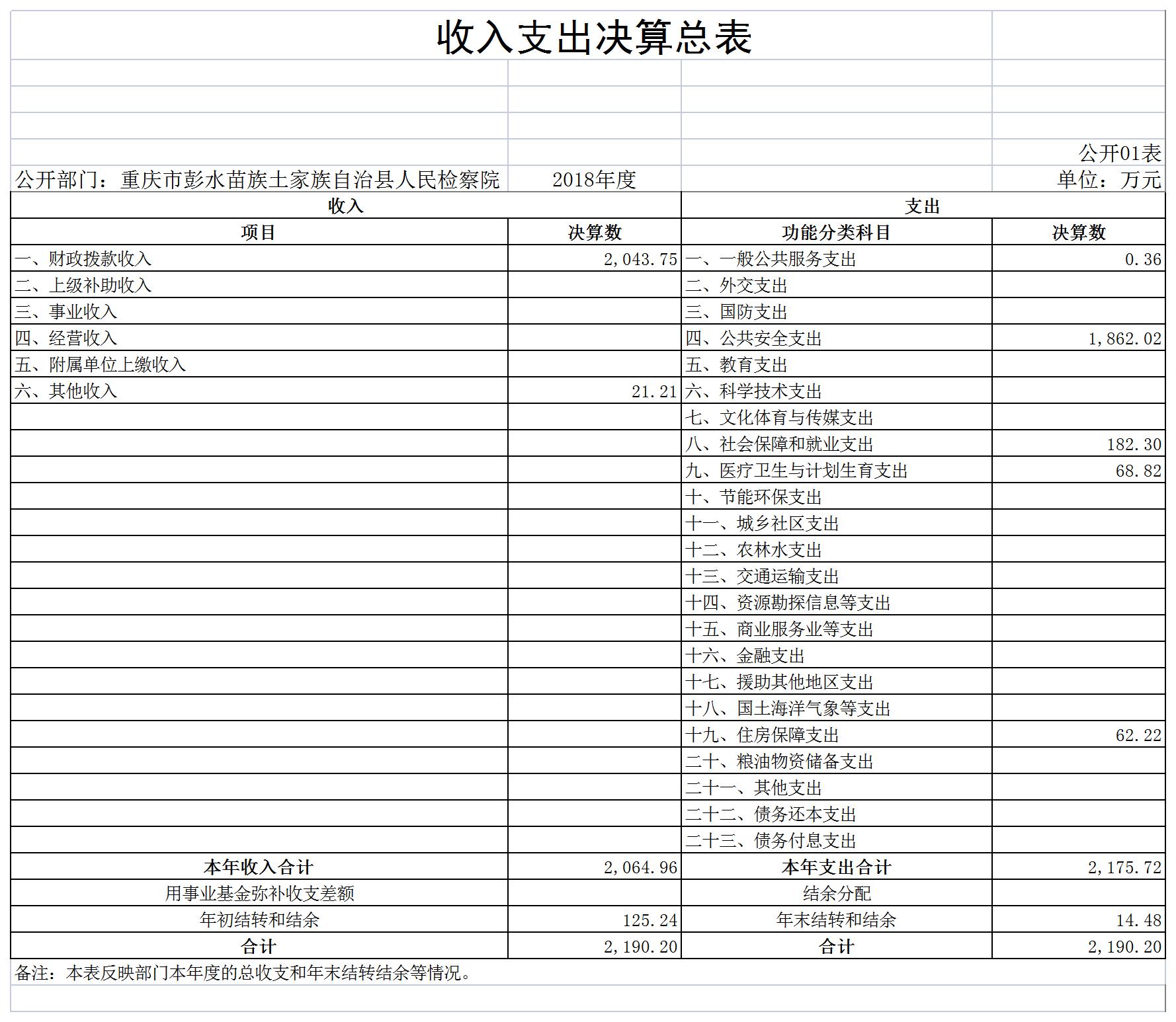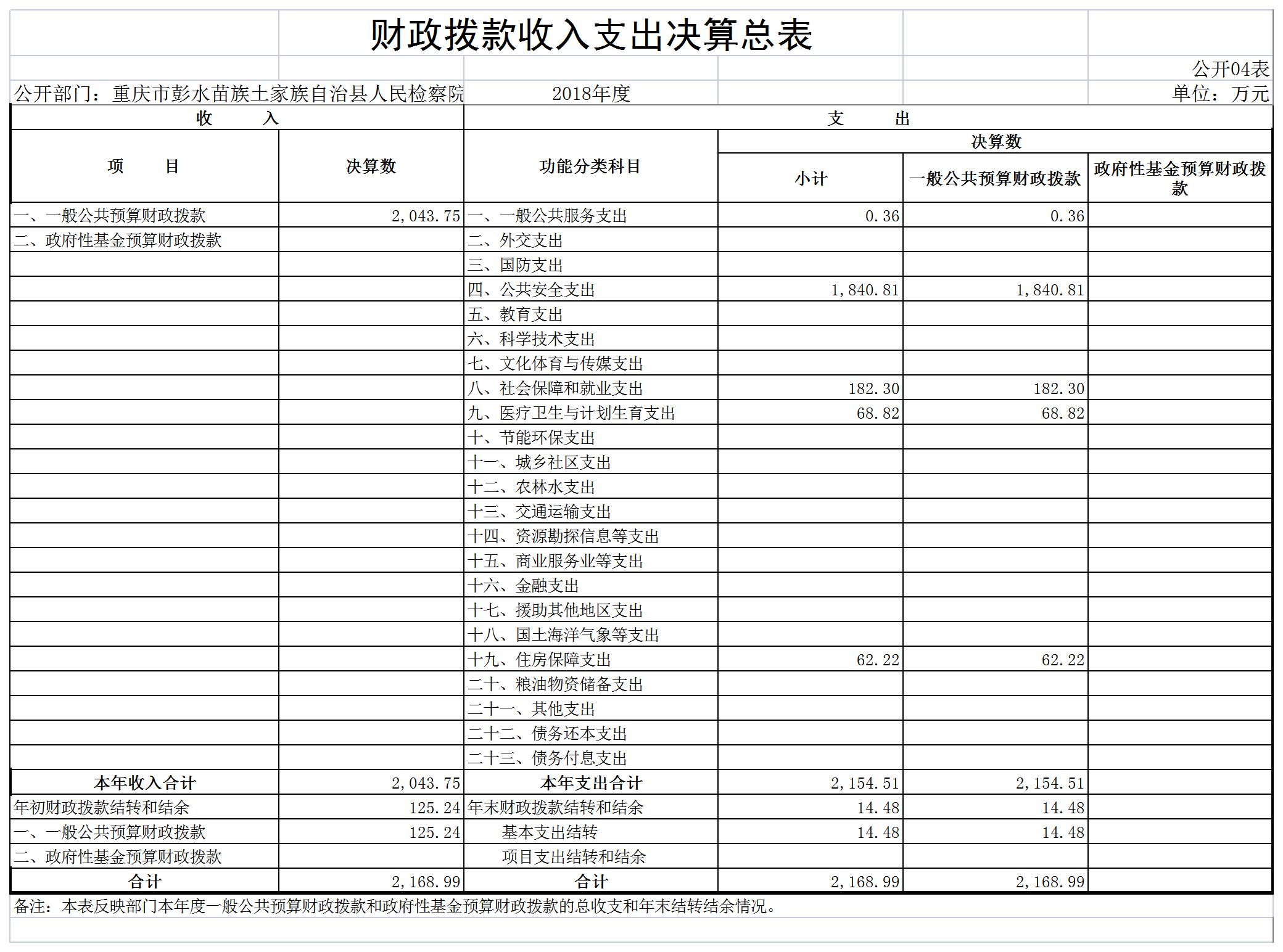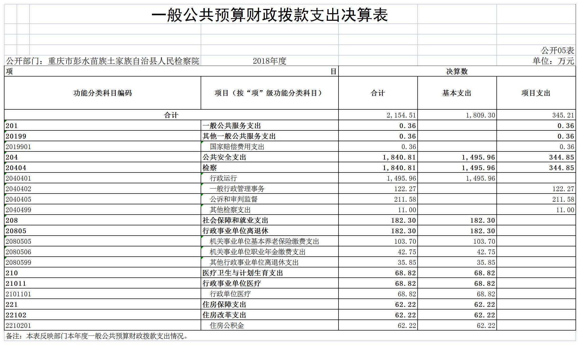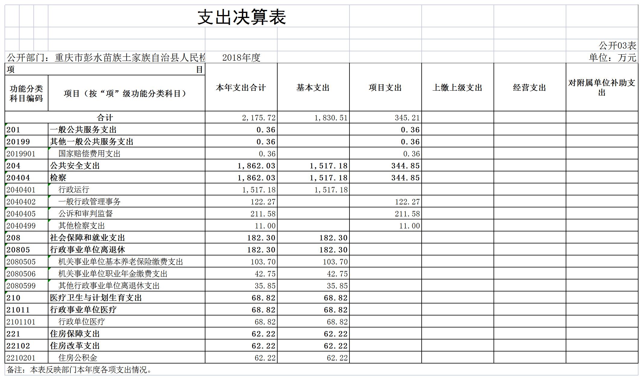 重庆市彭水苗族土家族自治县人民检察院2018年部门决算情况说明