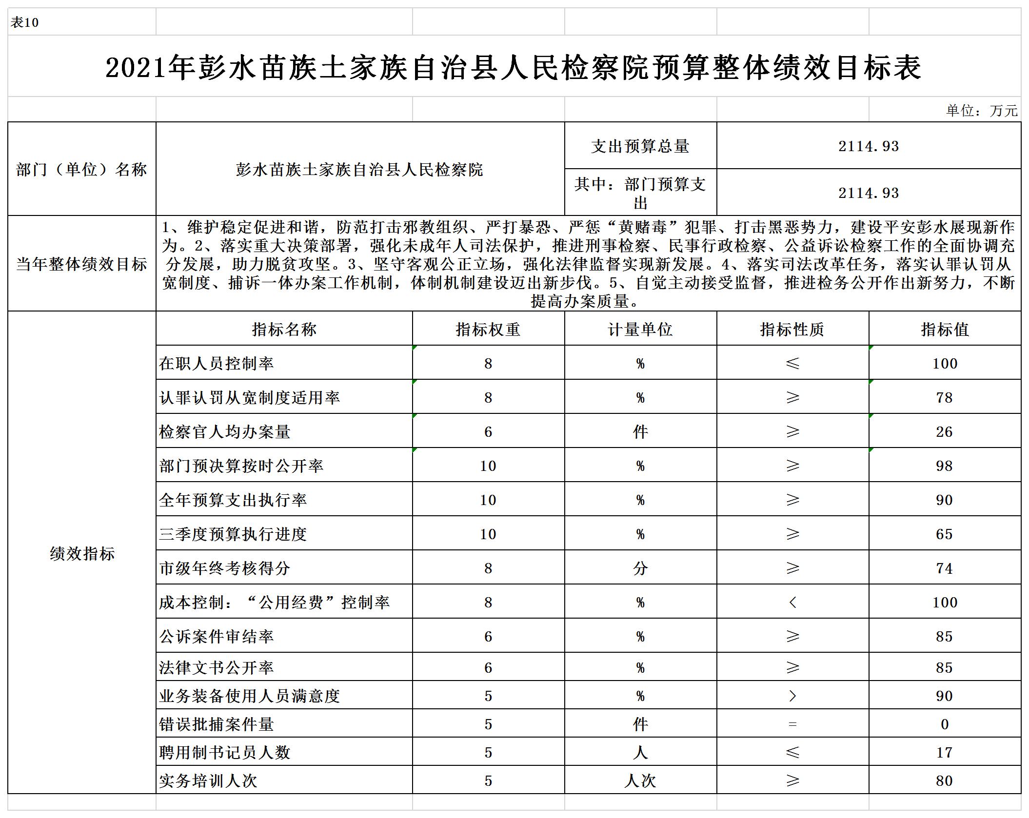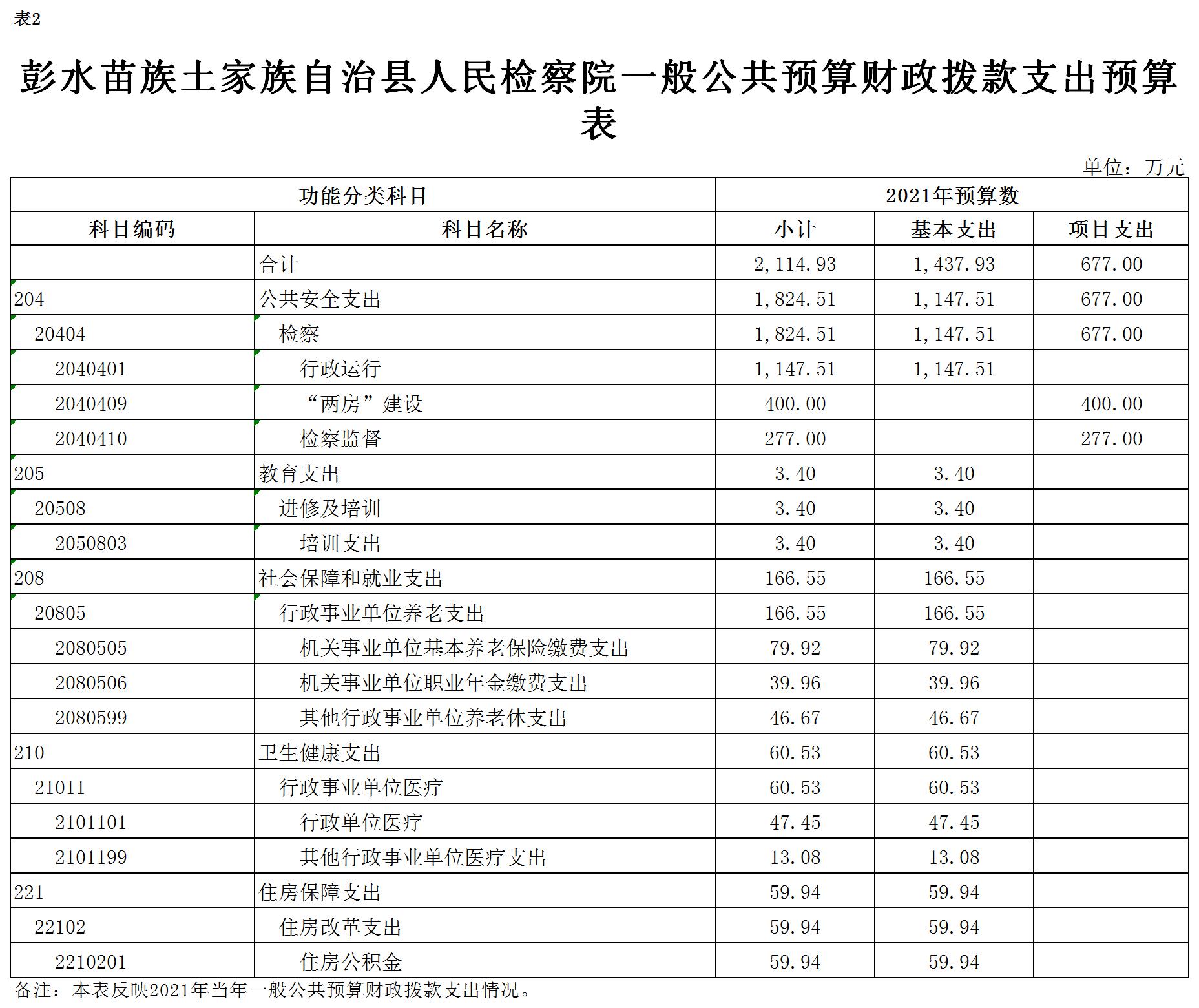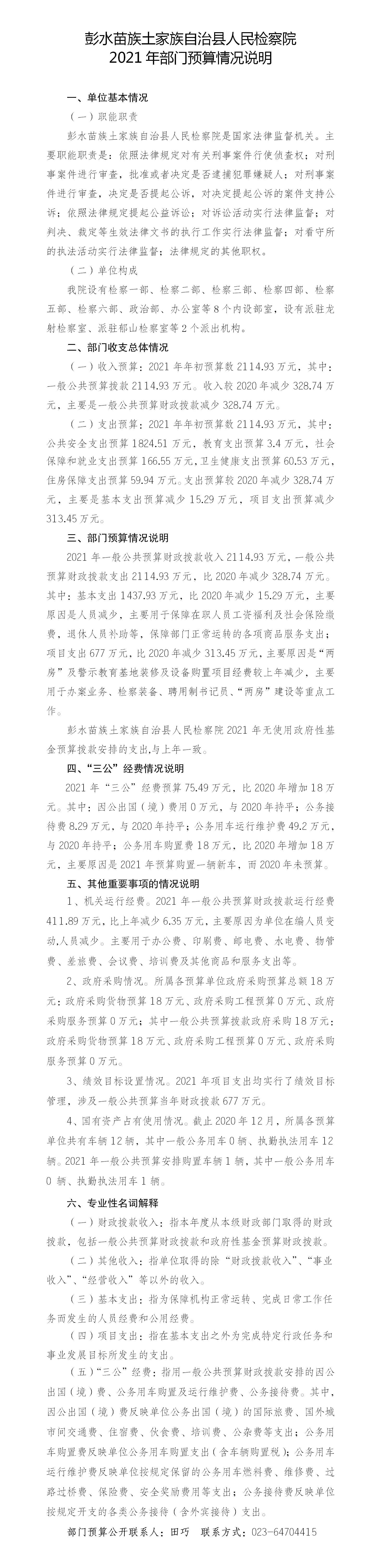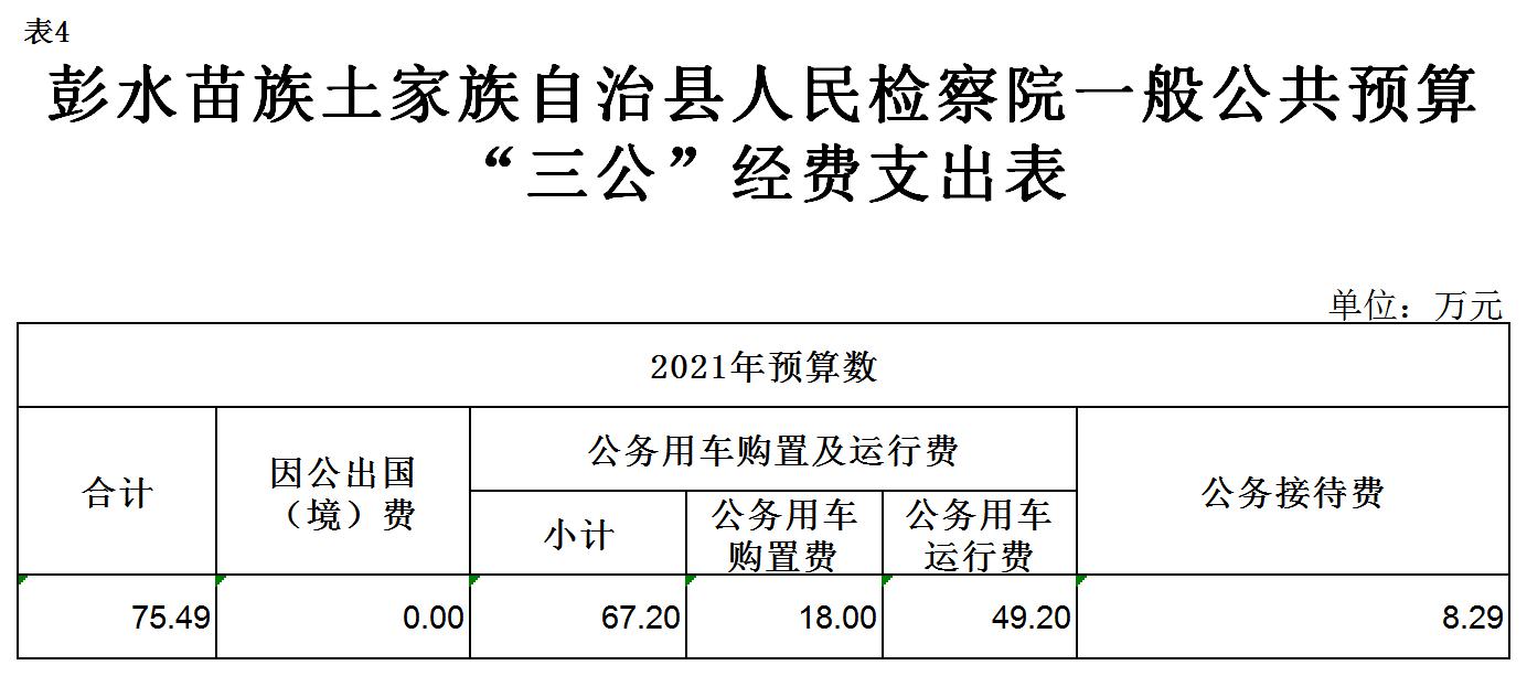 彭水苗族土家族自治县人民检察院2021年部门预算公开