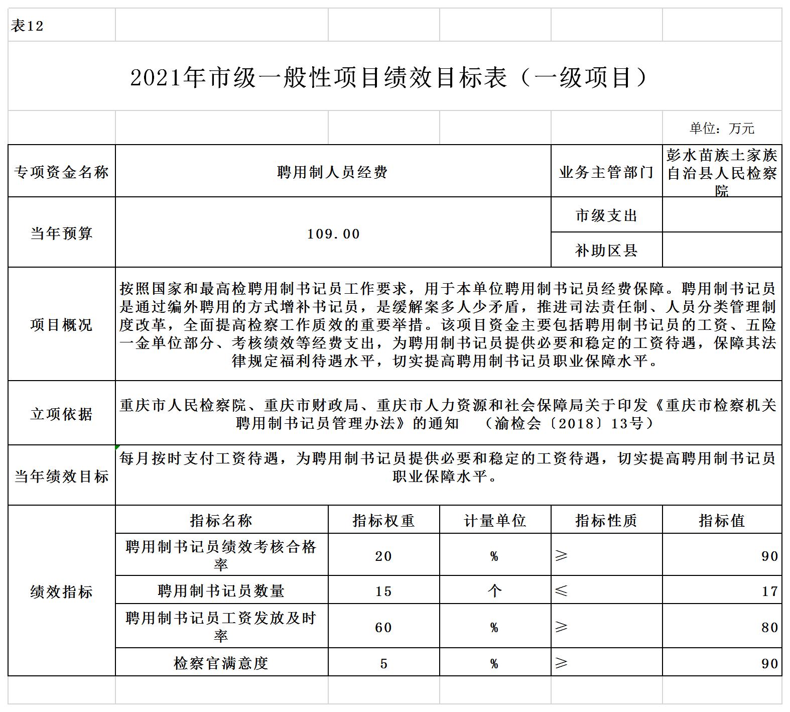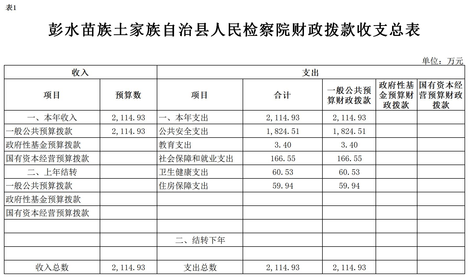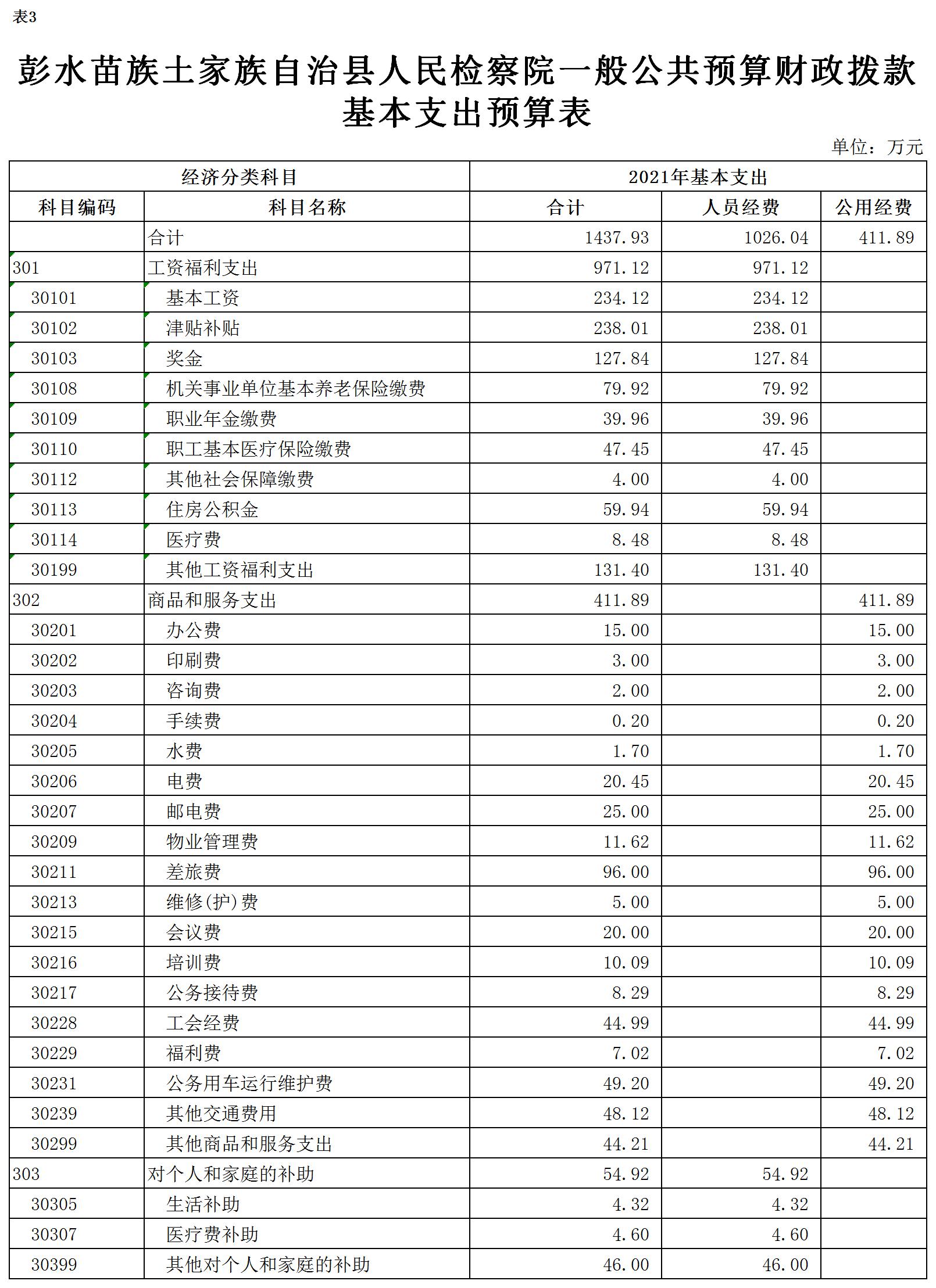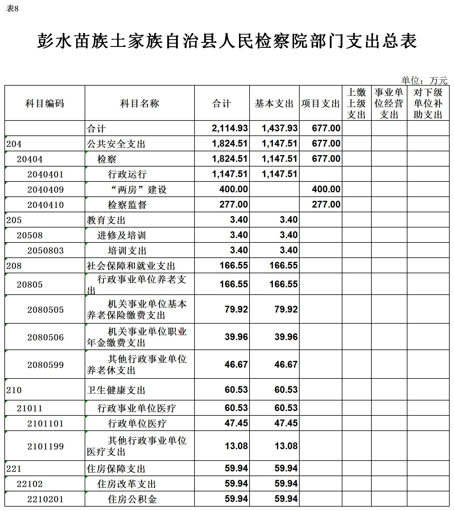 彭水苗族土家族自治县人民检察院2021年部门预算公开