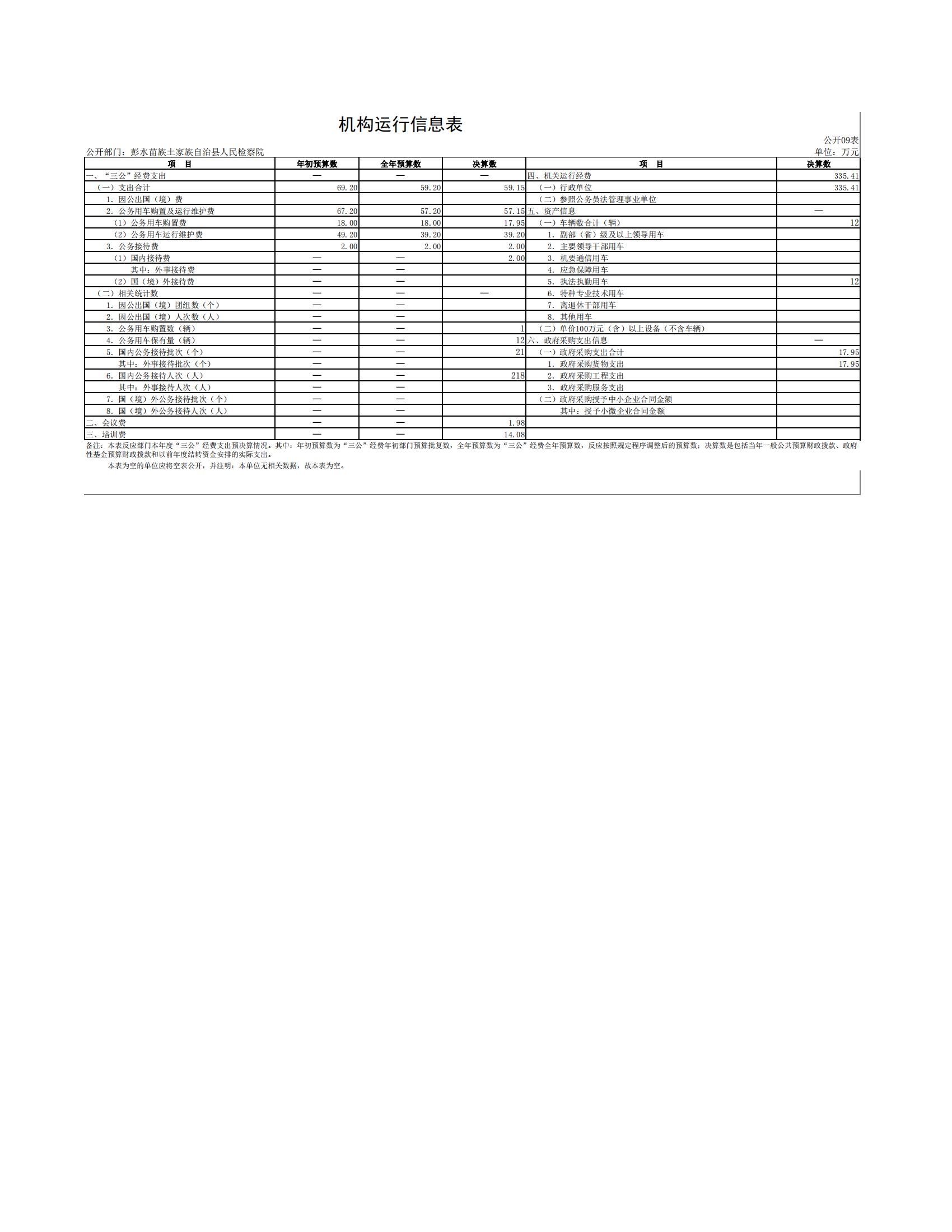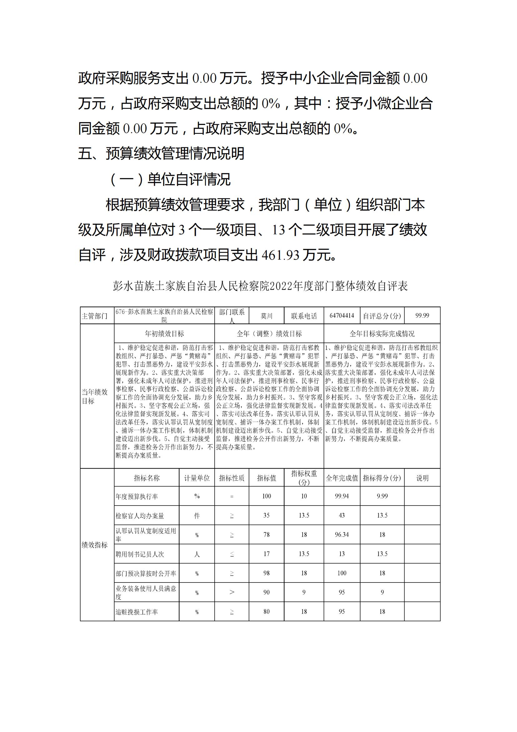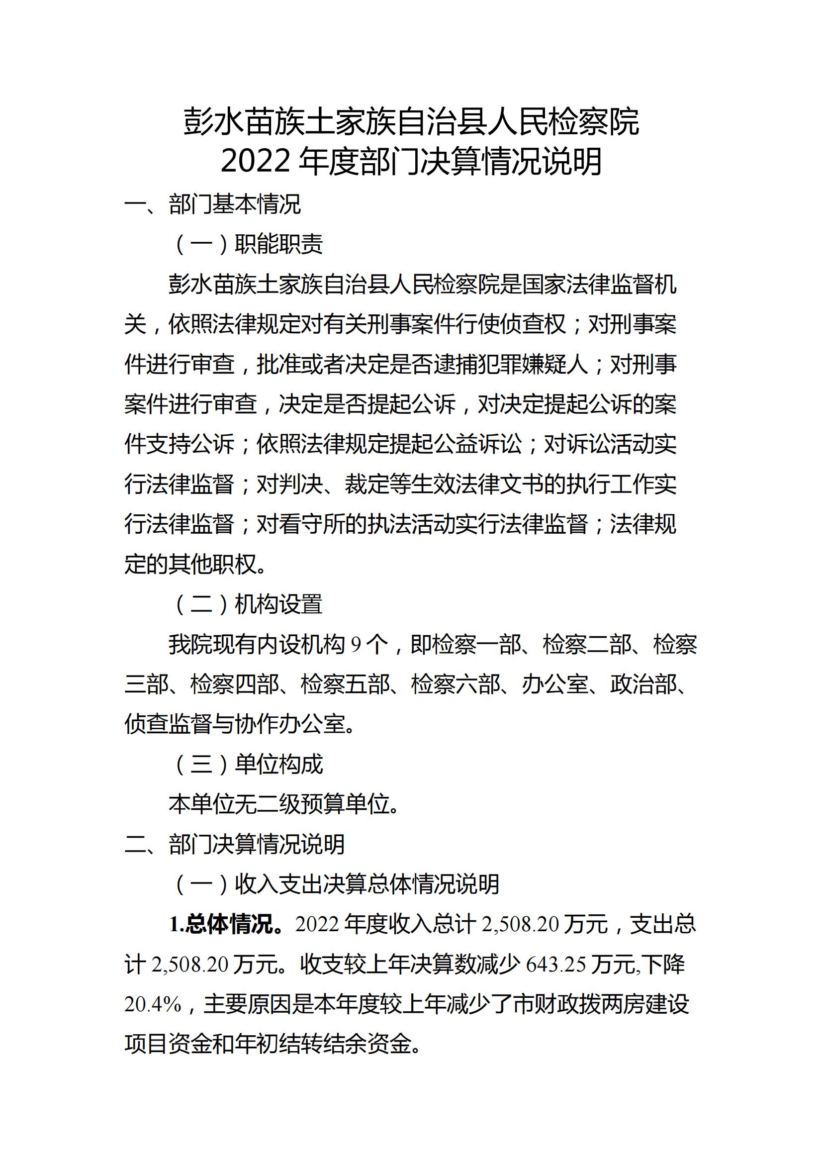 彭水苗族土家族自治县人民检察院2022年部门决算公开
