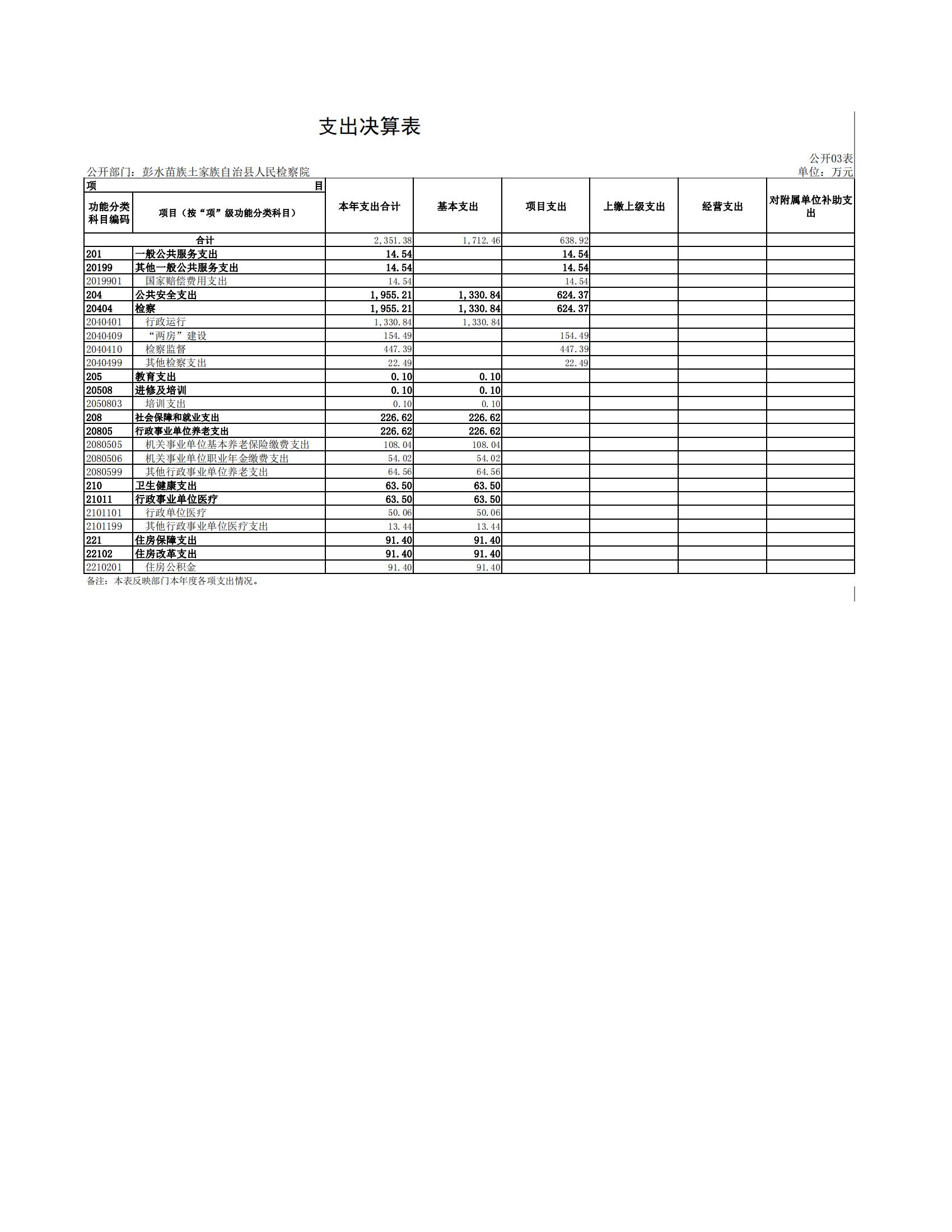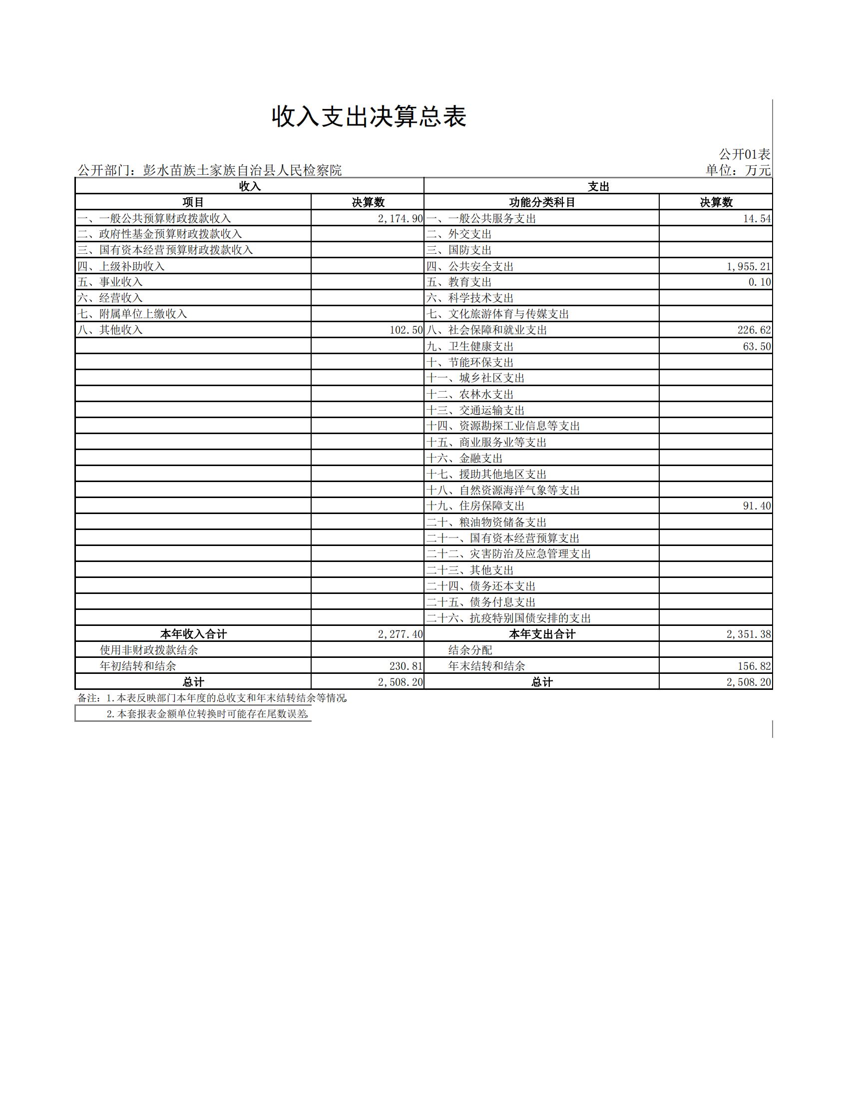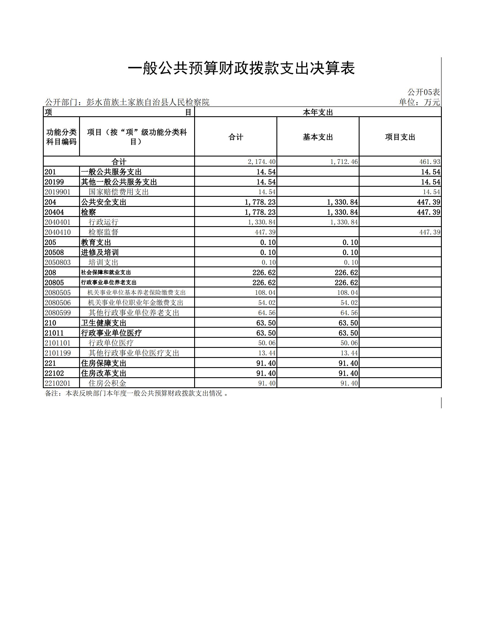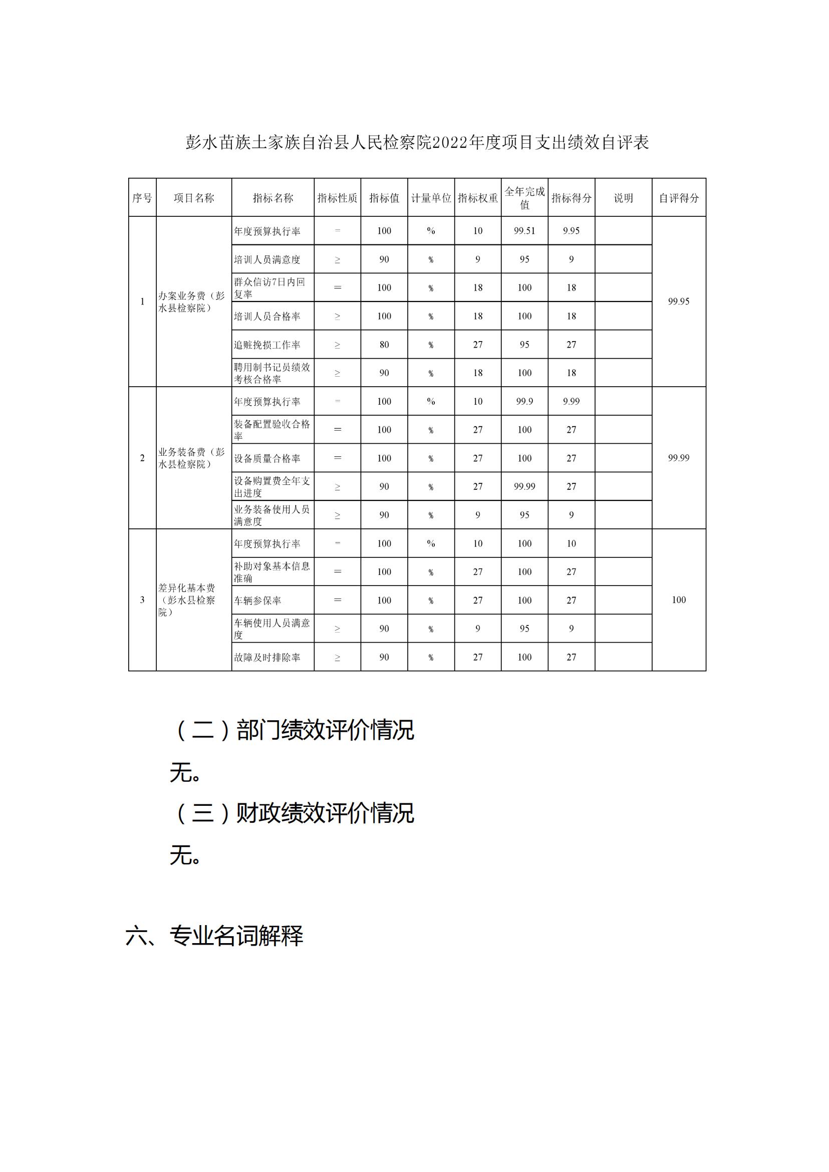 彭水苗族土家族自治县人民检察院2022年部门决算公开