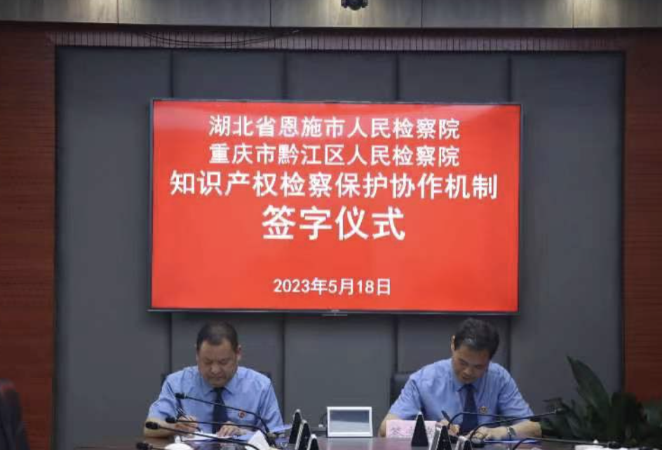 5月18日,湖北省恩施市人民检察院党组书记、检察长张国率队到重庆市黔江区人民检察院对接交流工作,双方就跨区域知识产权检察保护工作开展座谈,并签订了《知识产权检察保护协作机制》。