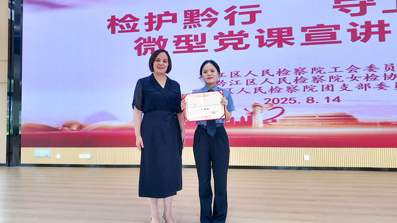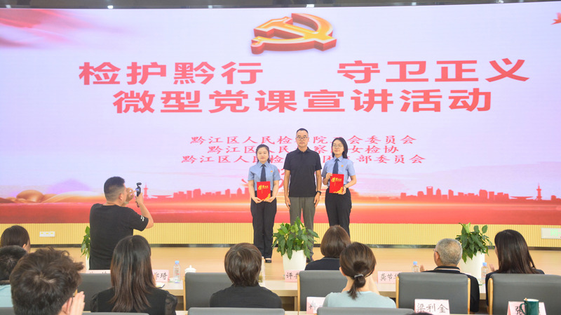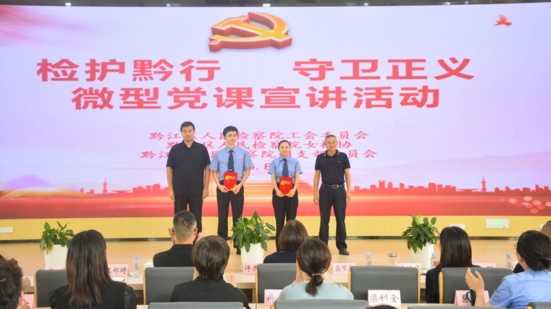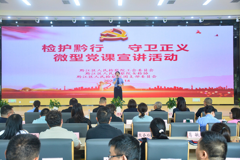 8月14日,黔江区检察院工会委员会、女检协 、团支部委员会联合开展“检护黔行·守卫正义”暨“深入贯彻中央八项规定精神,加快中心城市建设破局起势”微型党课宣讲活动。活动邀请市检察院四分院党组成员、政治部主任姜玲参加,院领导班子、全院干警观摩比赛。