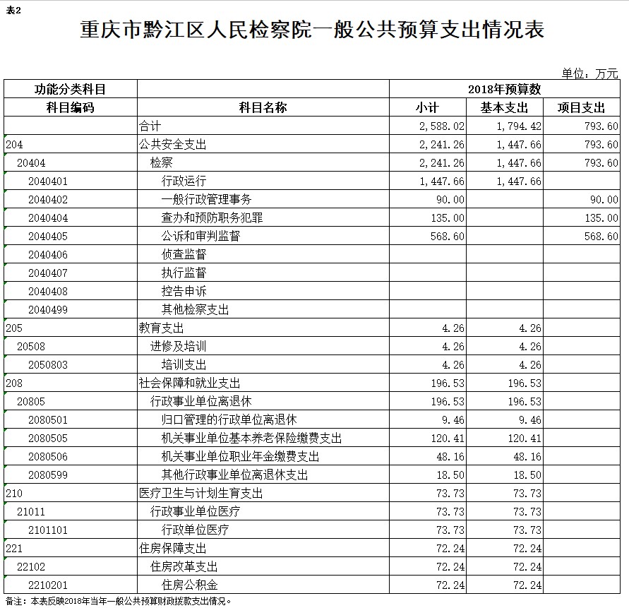 重庆市黔江区人民检察院2018年部门预算情况说明