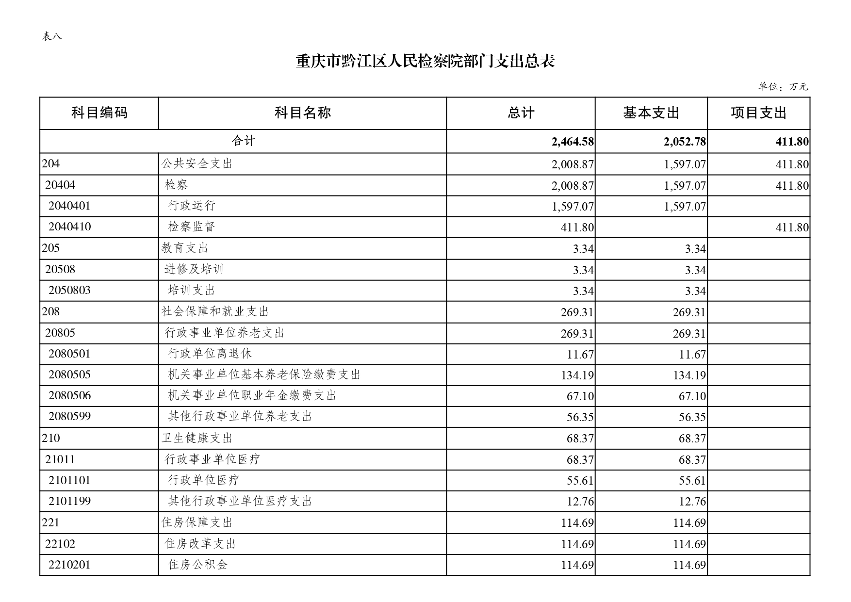 (二)支出预算:2023年年初预算数2464.58万元,其中:公共安全支出2008.87万元,教育支出3.34万元,社会保障和就业支出269.31万元,卫生健康支出68.37万元,住房保障支出114.69万元。支出预算较上年增加327.01万元,主要是基本支出预算增加392.25万元,项目支出预算减少65.24万元。