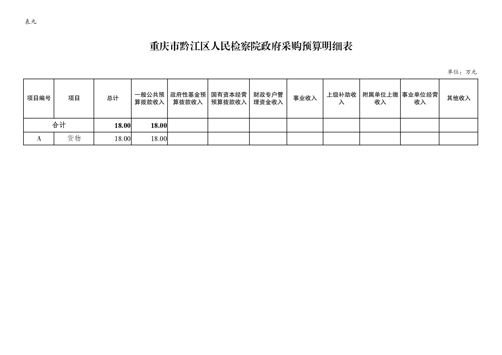 (二)政府采购情况。所属各预算单位政府采购预算总额18万元,其中:政府采购货物预算18万元,政府采购工程预算0万元,政府采购服务预算0万元。一般公共预算拨款政府采购18万元,其中:政府采购货物预算18万元,政府采购工程预算0万元,政府采购服务预算0万元。