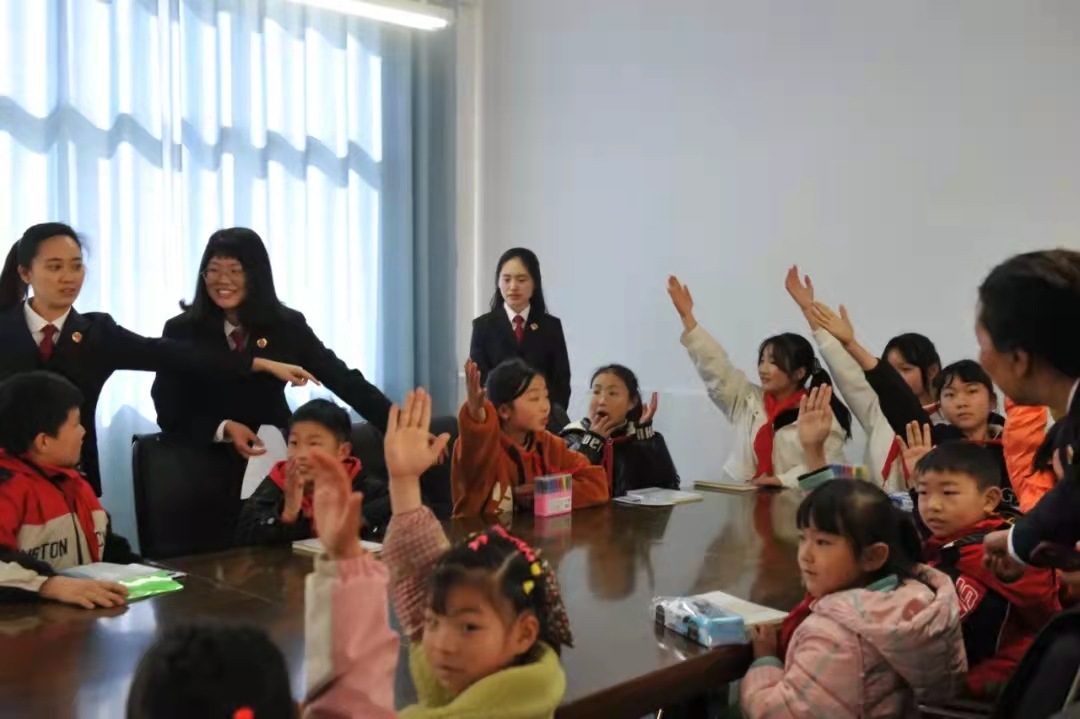 活动现场,莎姐们以“防性侵、防欺凌、防诈骗”为主题,通过“法律常识帮帮读”、法律知识有奖竞答、情景模拟小剧场、互动小游戏等丰富多彩的形式,给同学们带来了一堂生动的法治教育课。同时,莎姐们为在场的小朋友送上了“文具大礼包”,鼓励他们保持积极乐观的生活态度,努力学习,健康成长。