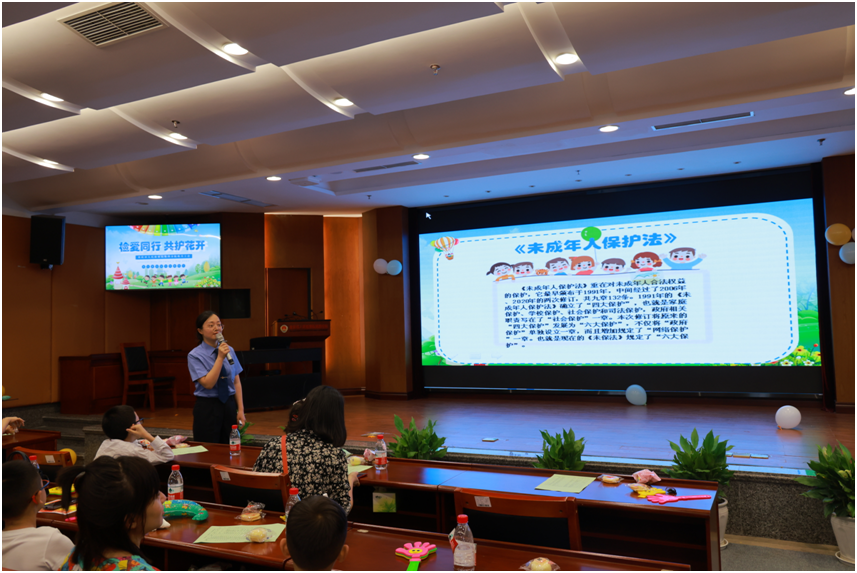 6月1日,四分院邀请部分小朋友及家长在本院开展“检爱同行 ,共护花开”检察开放日活动。活动中,“莎姐”检察官以小朋友们的学习、生活、成长为切入点,以《未成年人保护法》《预防未成年人犯罪法》为内容,通过观看普法动画,有奖互动问答等形式,为小朋友们带来了一堂精彩的法治课,陪小朋友们过了一个不同寻常的儿童节。
