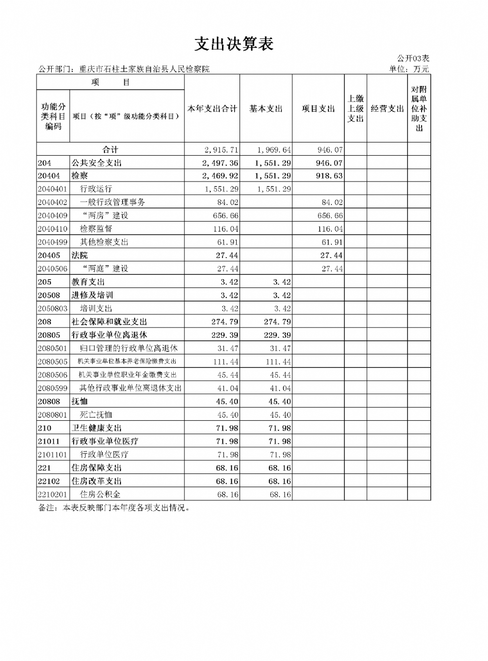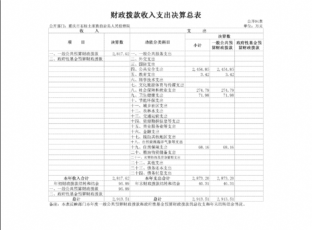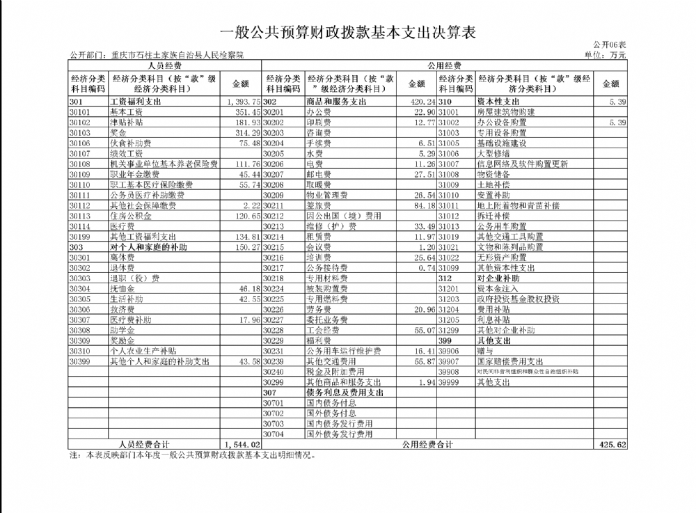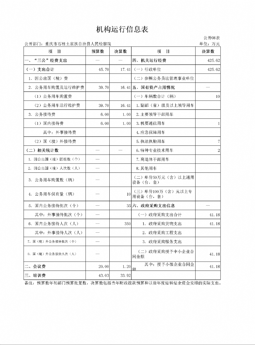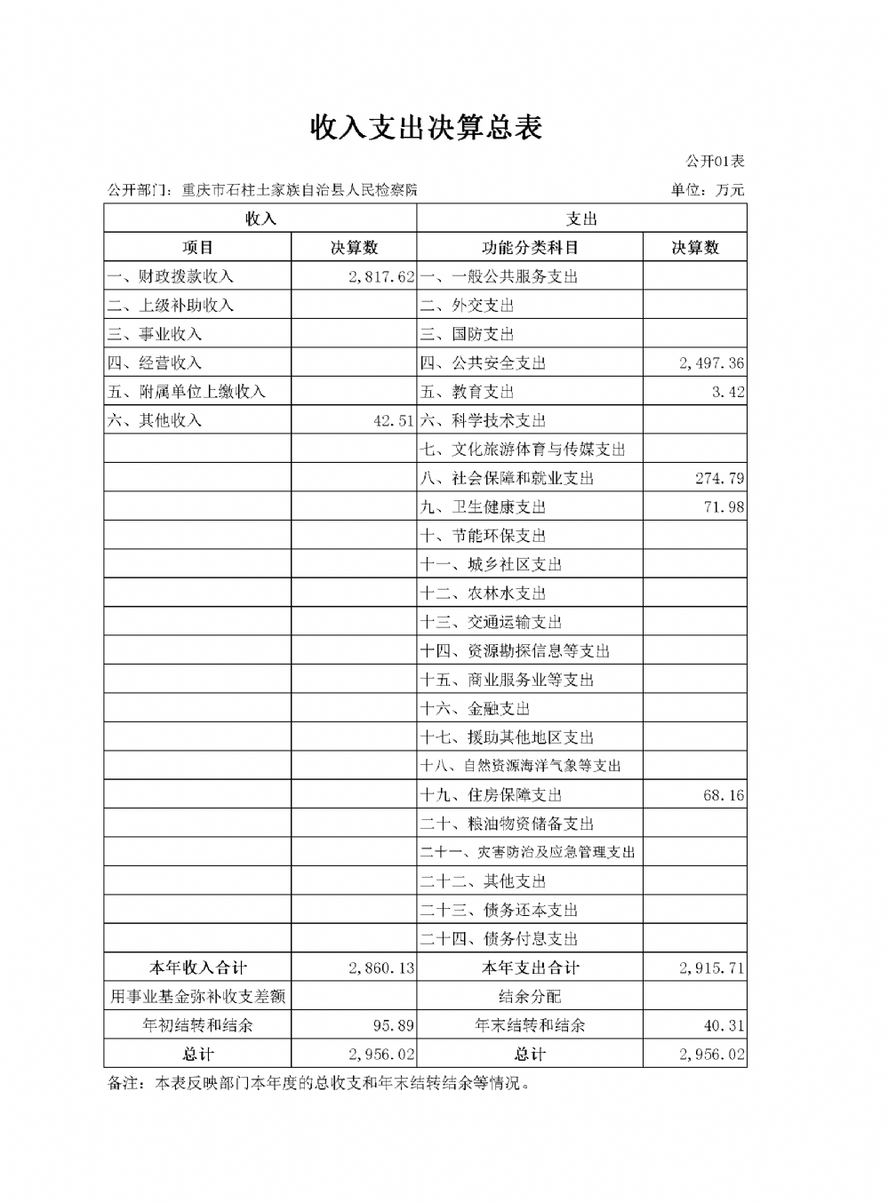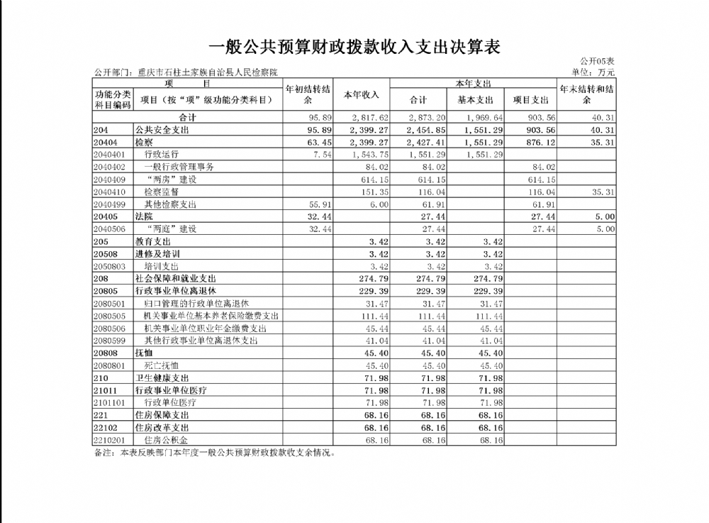 重庆市石柱土家族自治县人民检察院2019年度部门决算情况说明