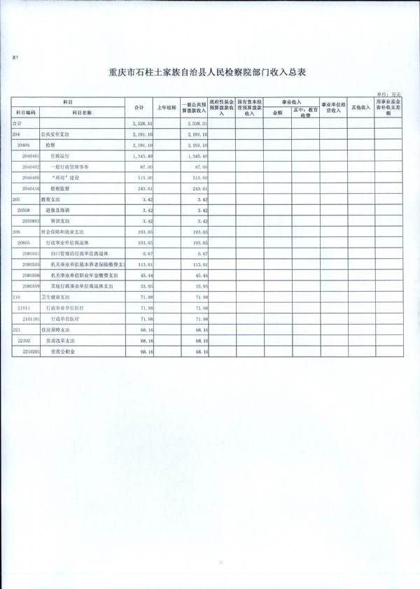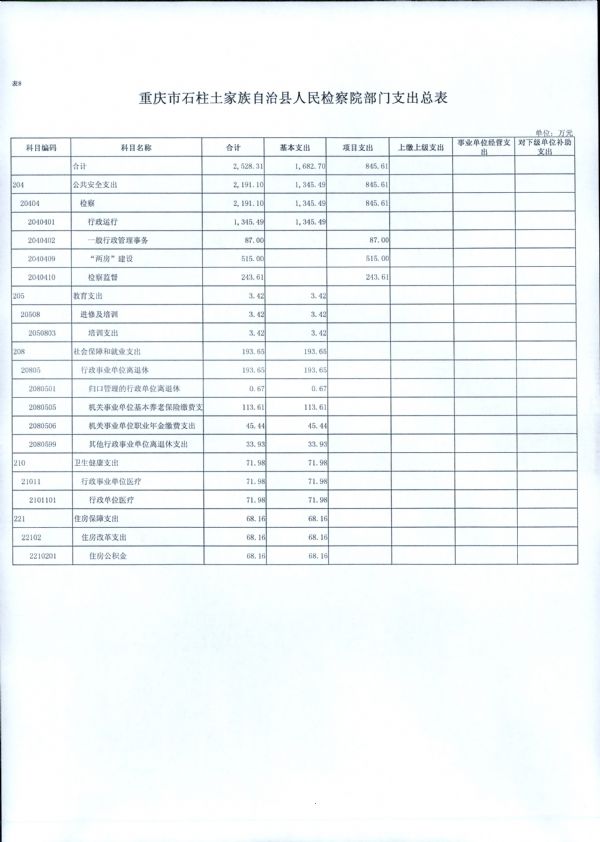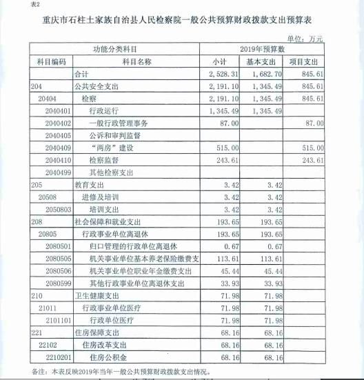 重庆市石柱土家族自治县人民检察院2019年部门预算情况说明