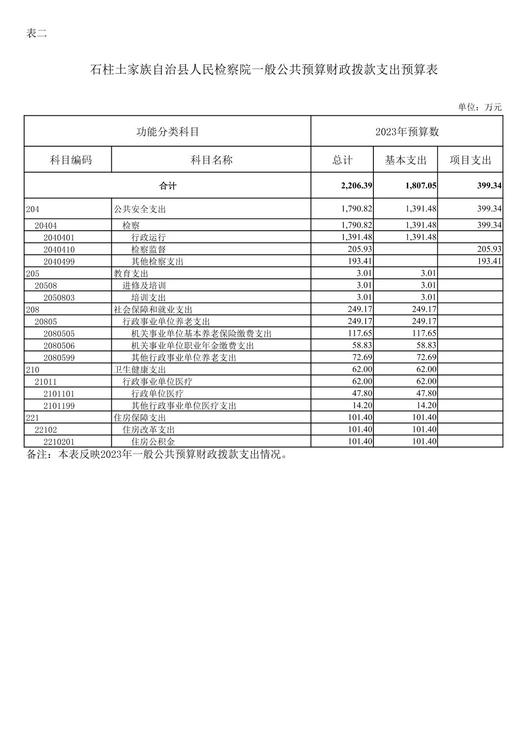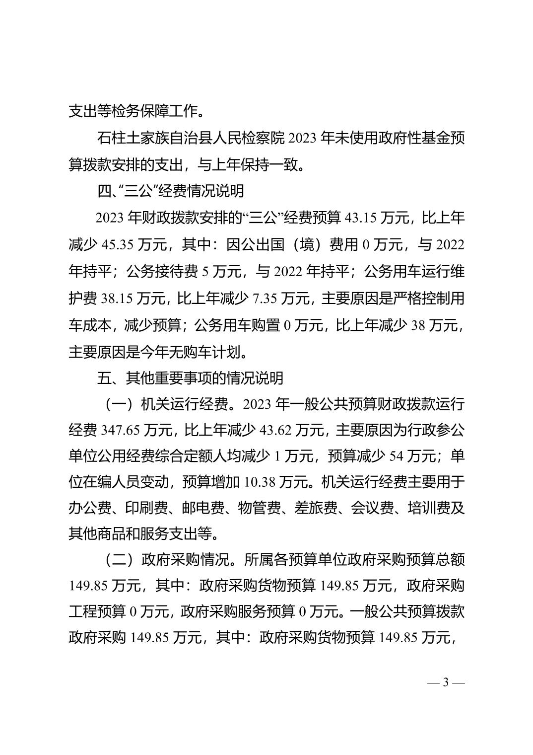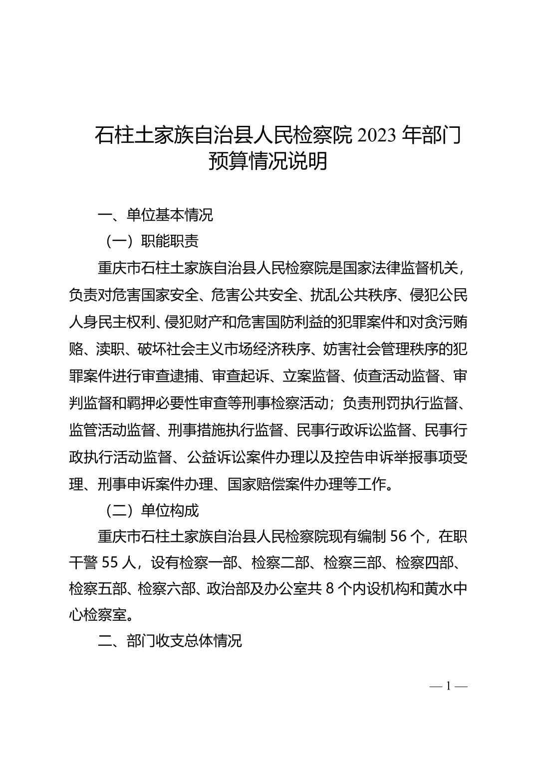 石柱土家族自治县人民检察院2023年部门预算情况说明及附表
