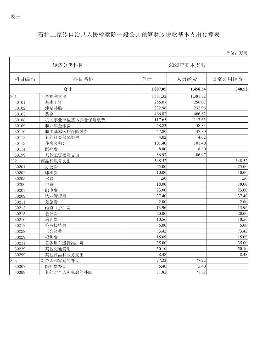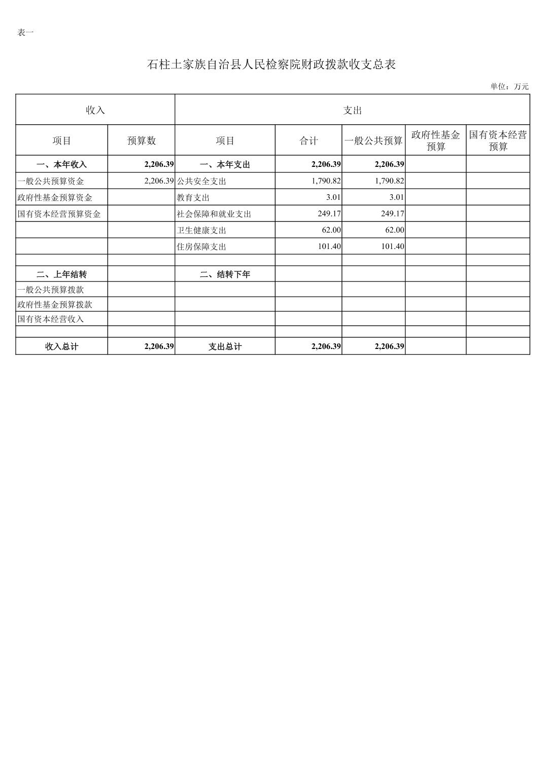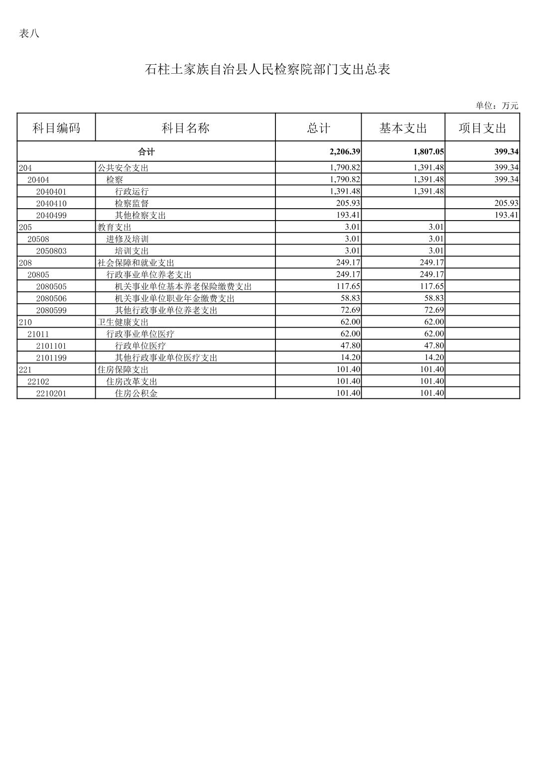 石柱土家族自治县人民检察院2023年部门预算情况说明及附表