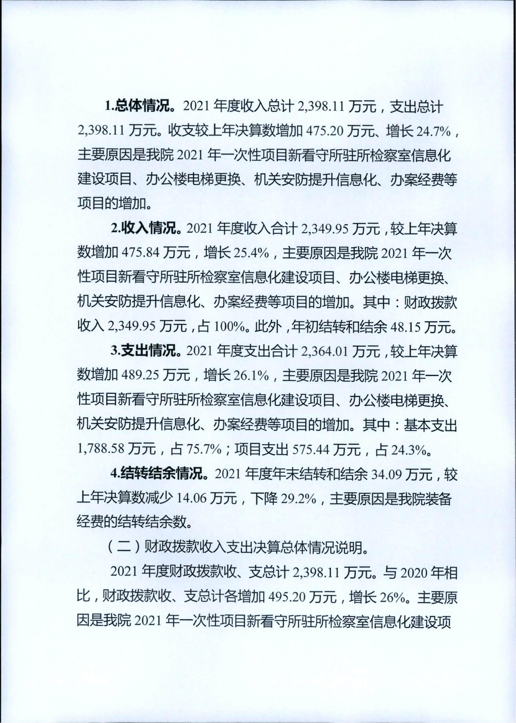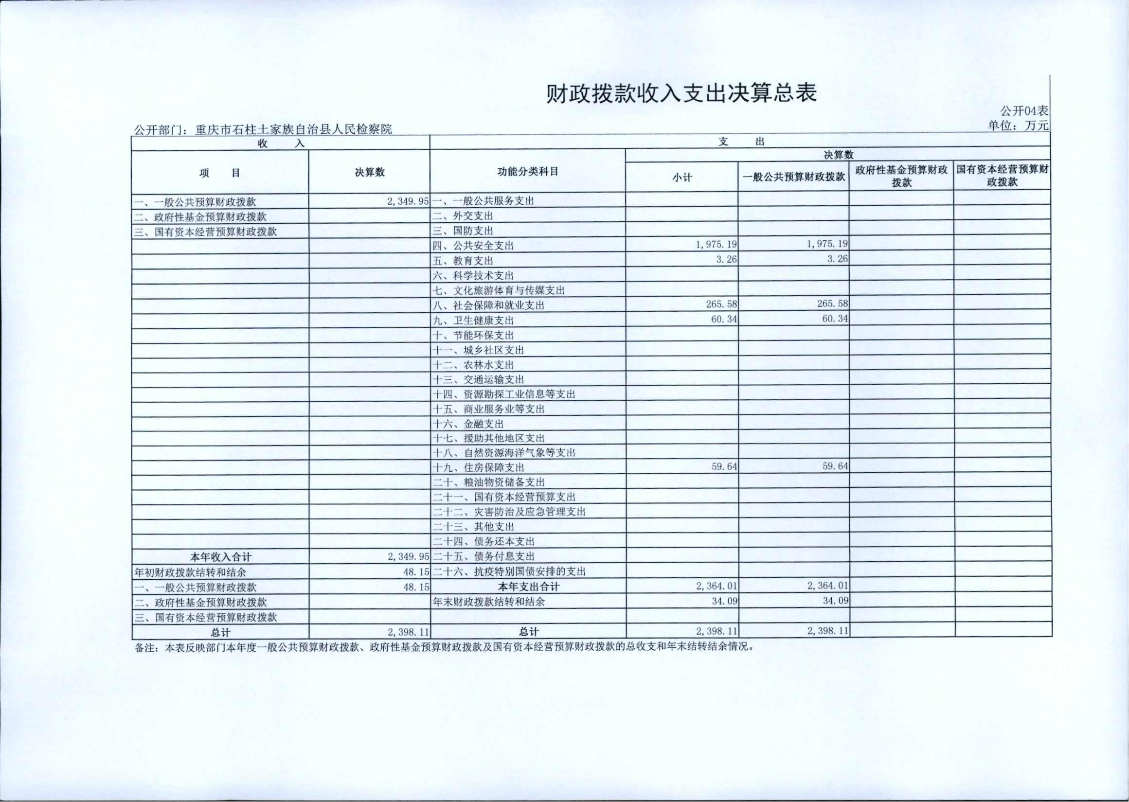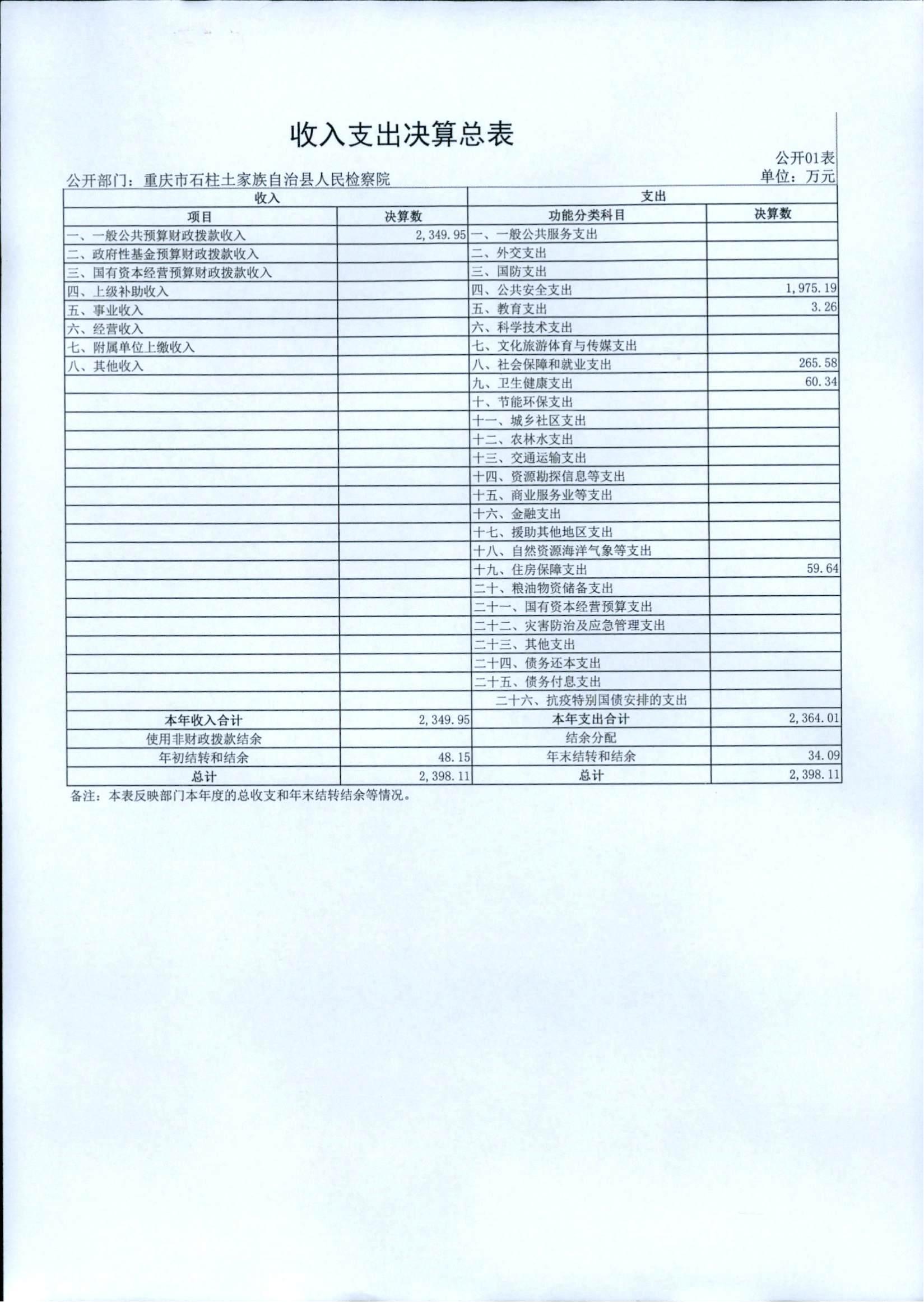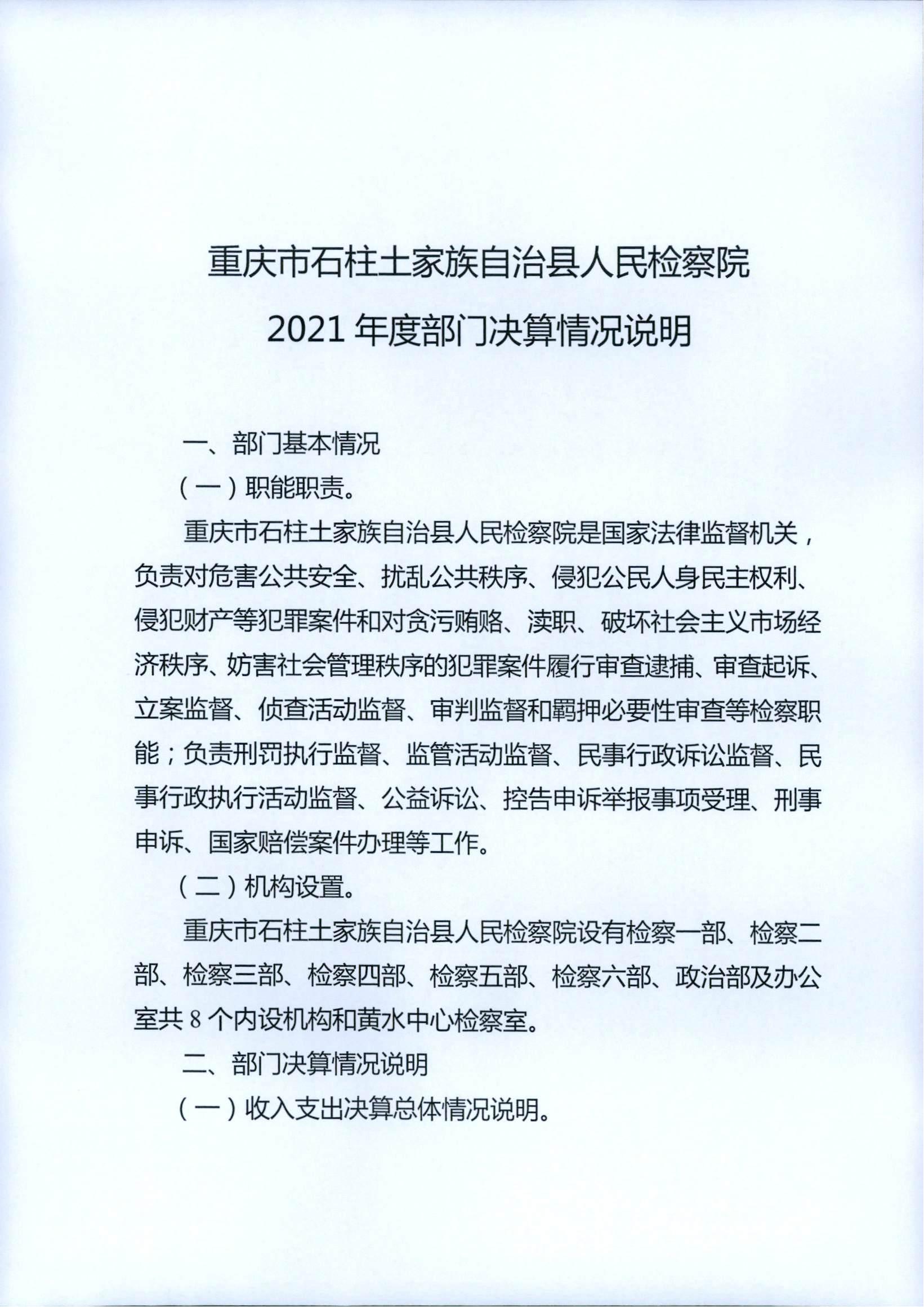 重庆市石柱土家族自治县人民检察院2021年度部门决算情况公开