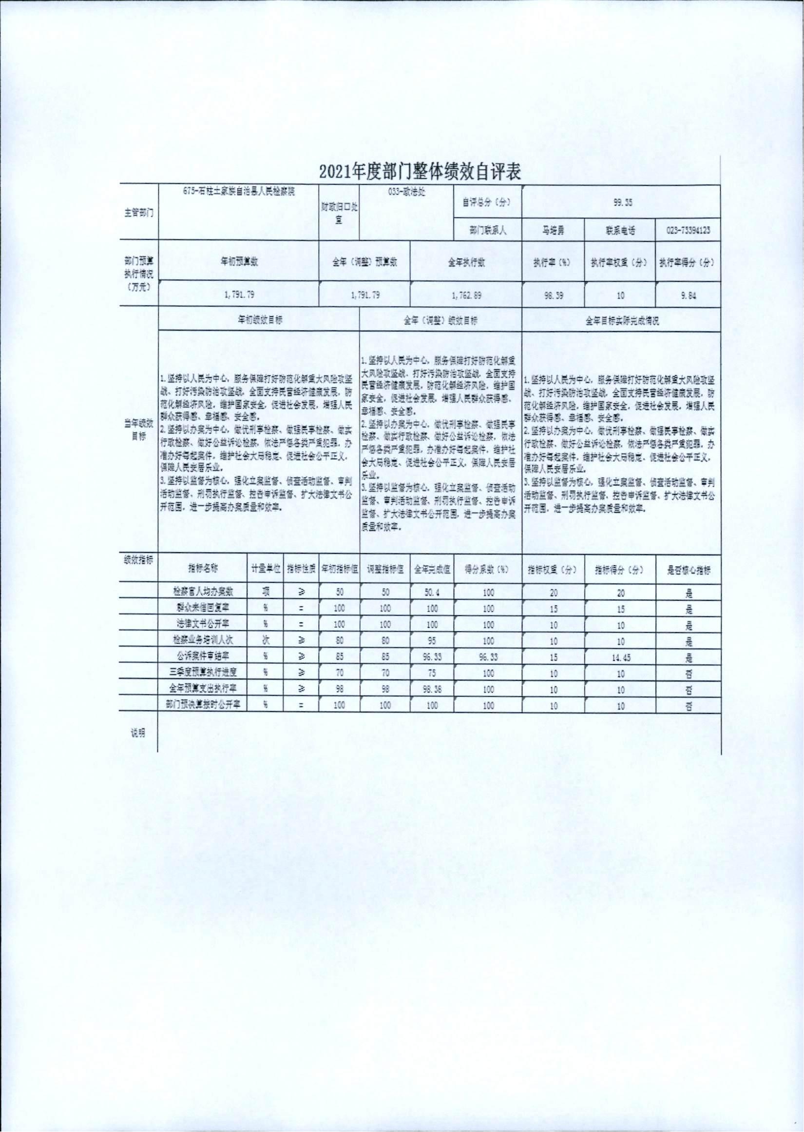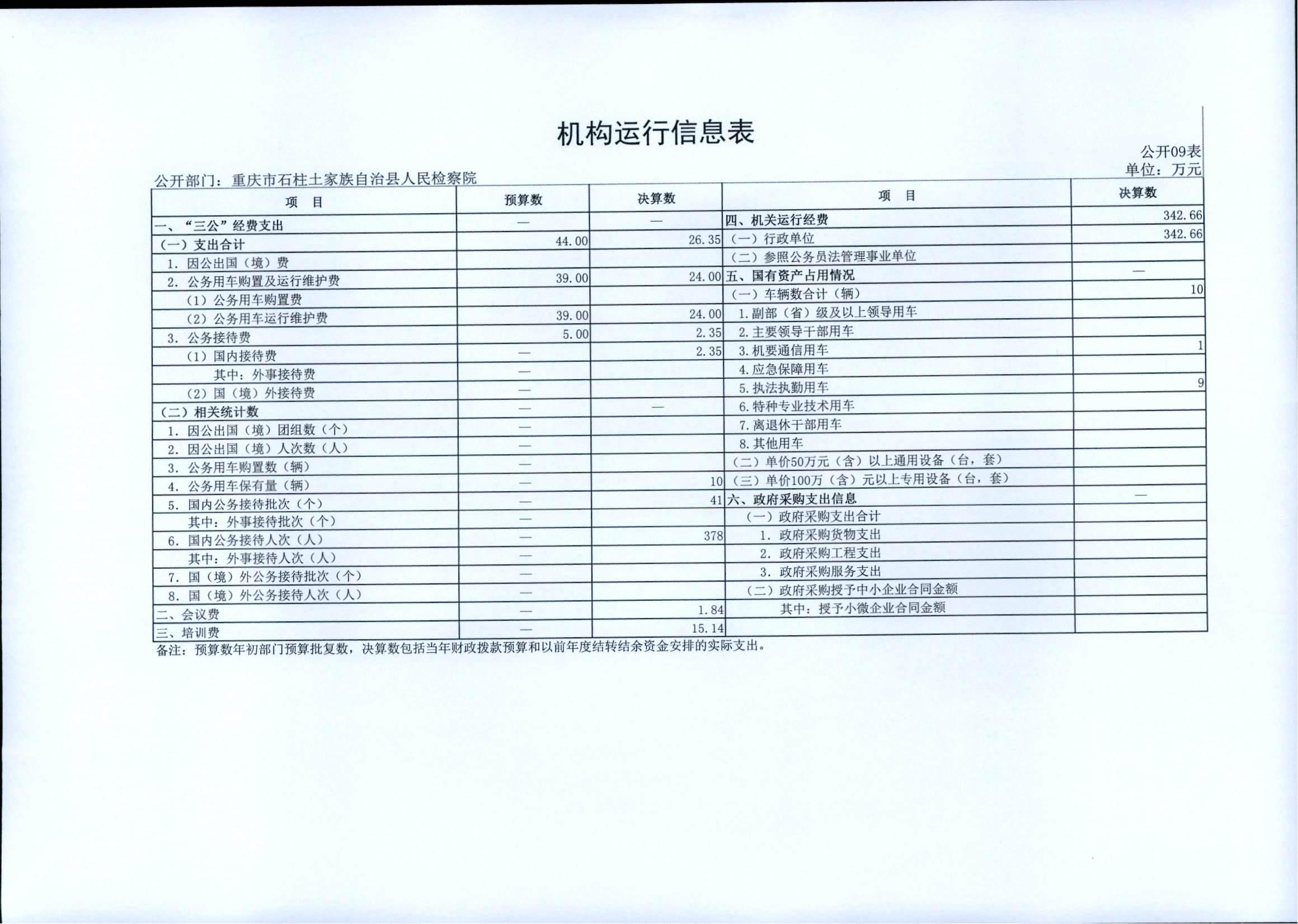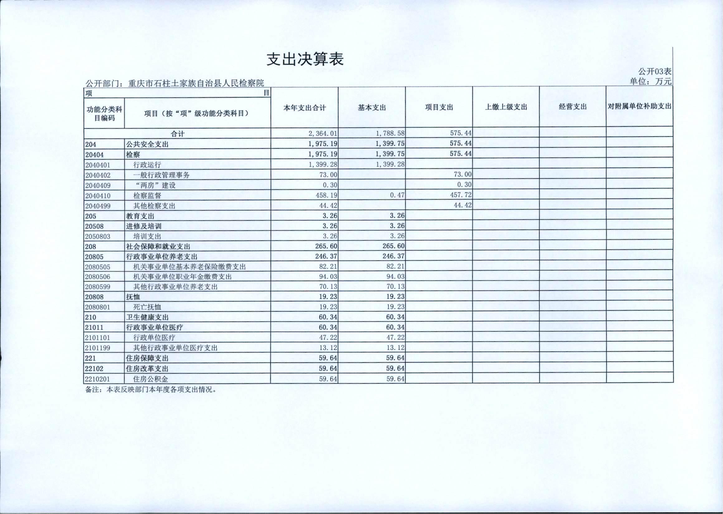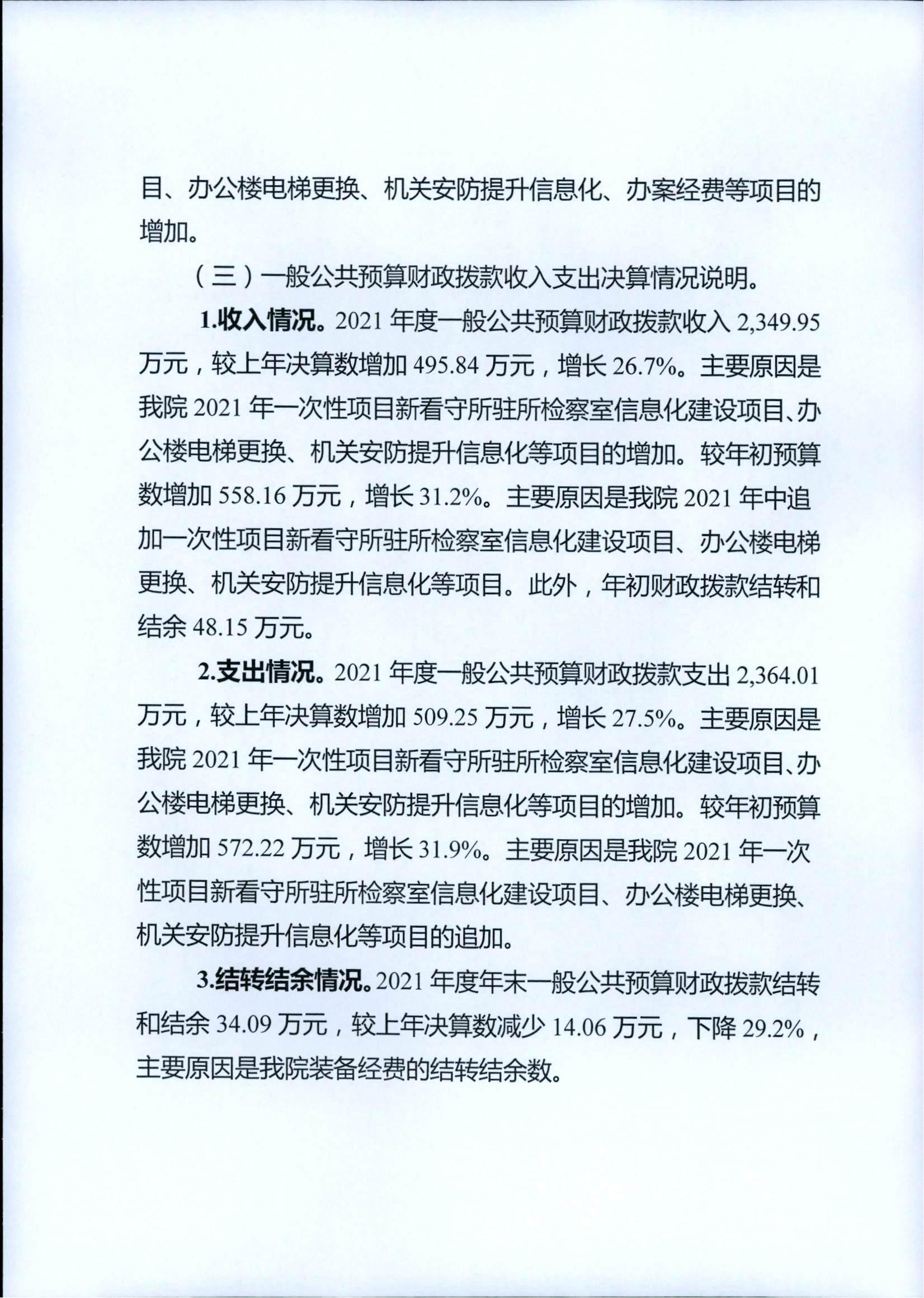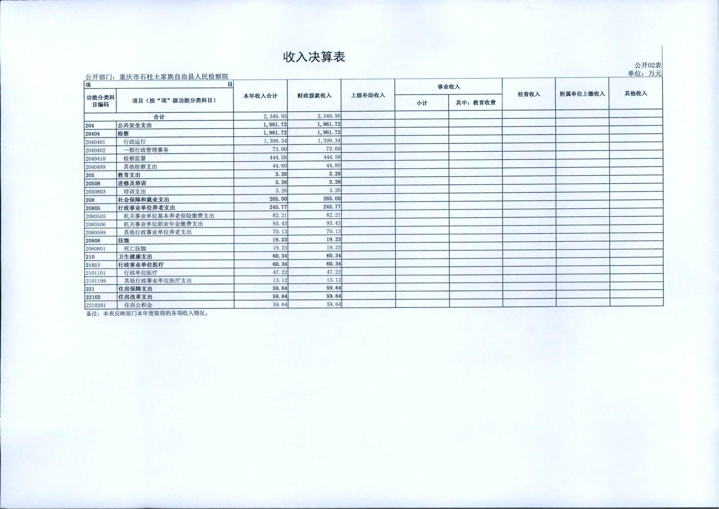 重庆市石柱土家族自治县人民检察院2021年度部门决算情况公开