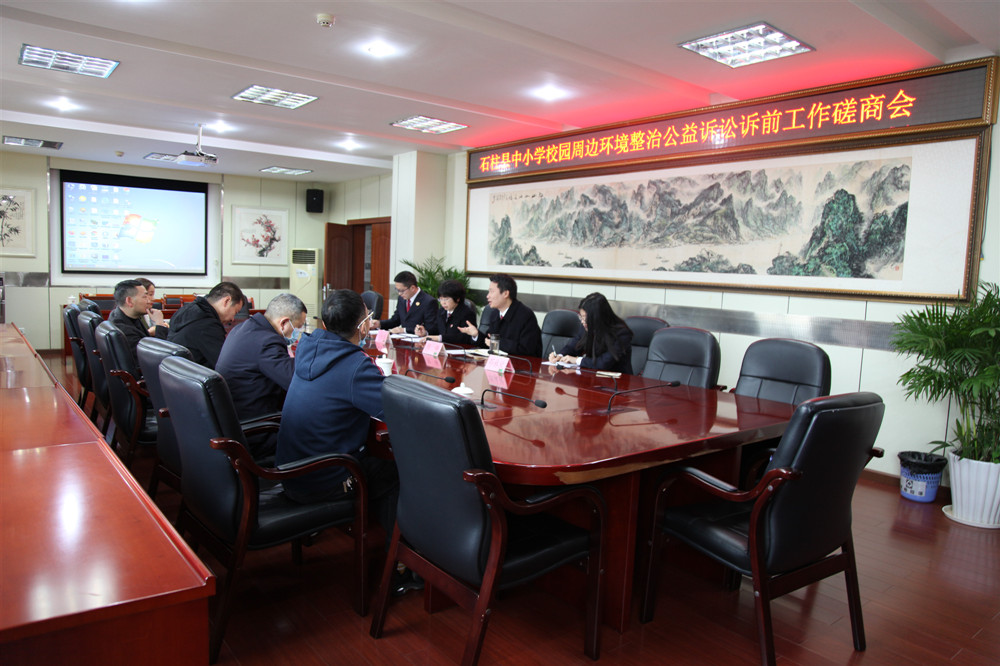 二是部门磋商。3月31日,我院邀请县文旅委、县教委、县市场监管局相关负责人召开石柱县中小学周边环境整治公益诉讼诉前工作磋商会。会上,我院对相关情况进行了说明并对收集的证据进行了展示,几家单位表示将积极承担相应职责共同维护未成年人身心健康,并就后续形成监管合力,对校园周边环境进行整治开展联合执法、加强宣传教育形成共识。