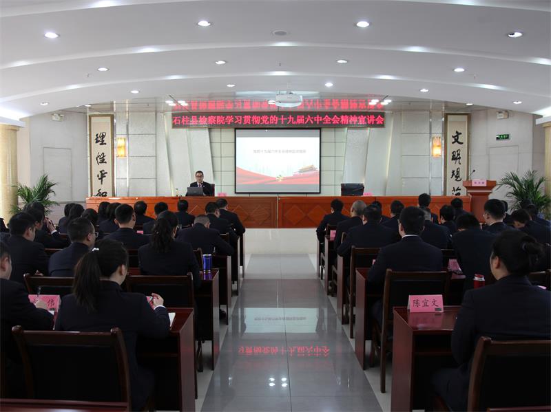 1月17日,石柱县检察院召开全院干警大会,院党组书记、检察长彭波为全院干警宣讲党的十九届六中全会精神。