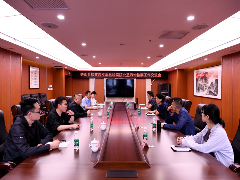 5月22日,巫溪县检察院副检察长钟明一行到秀山县检察院交流公益诉讼检察工作。秀山县检察院副检察长张敏、检察四部主任徐海及公益诉讼检察部门全体干警参加座谈。
