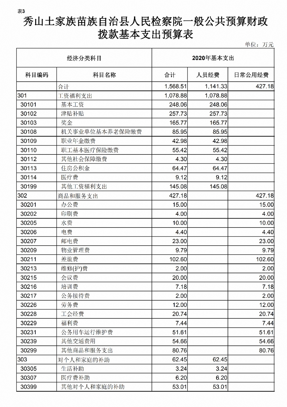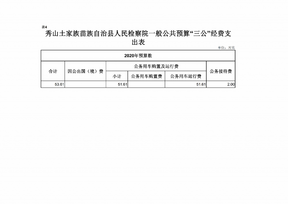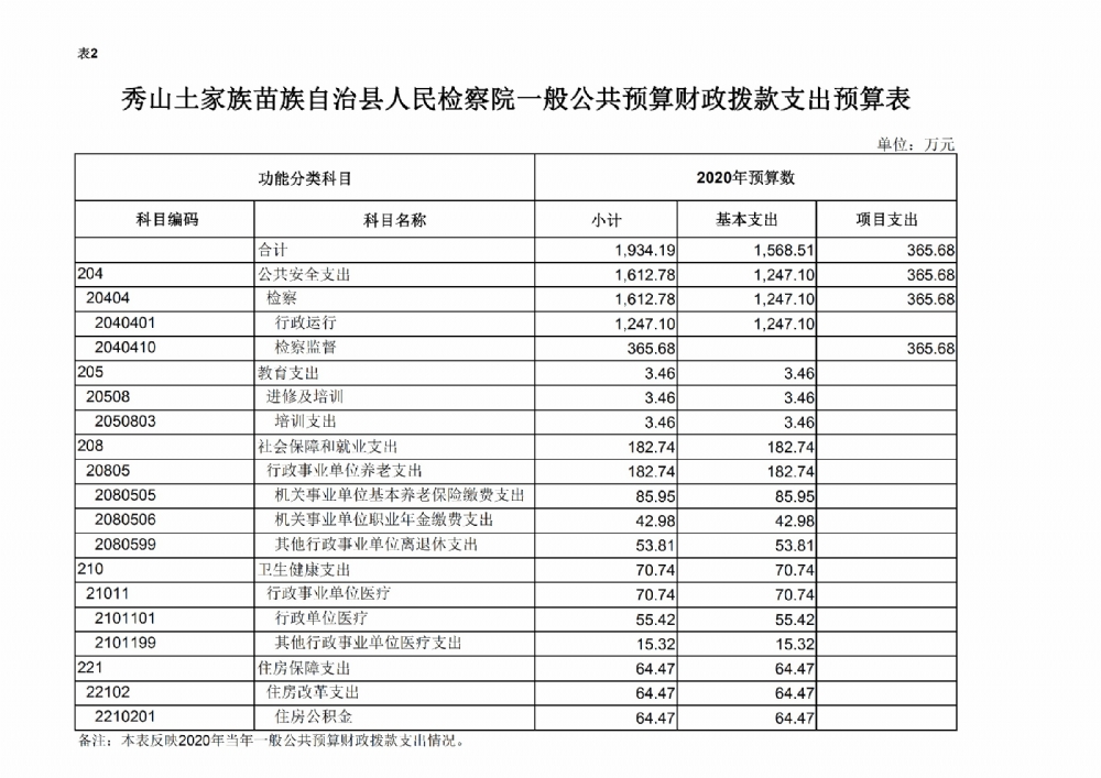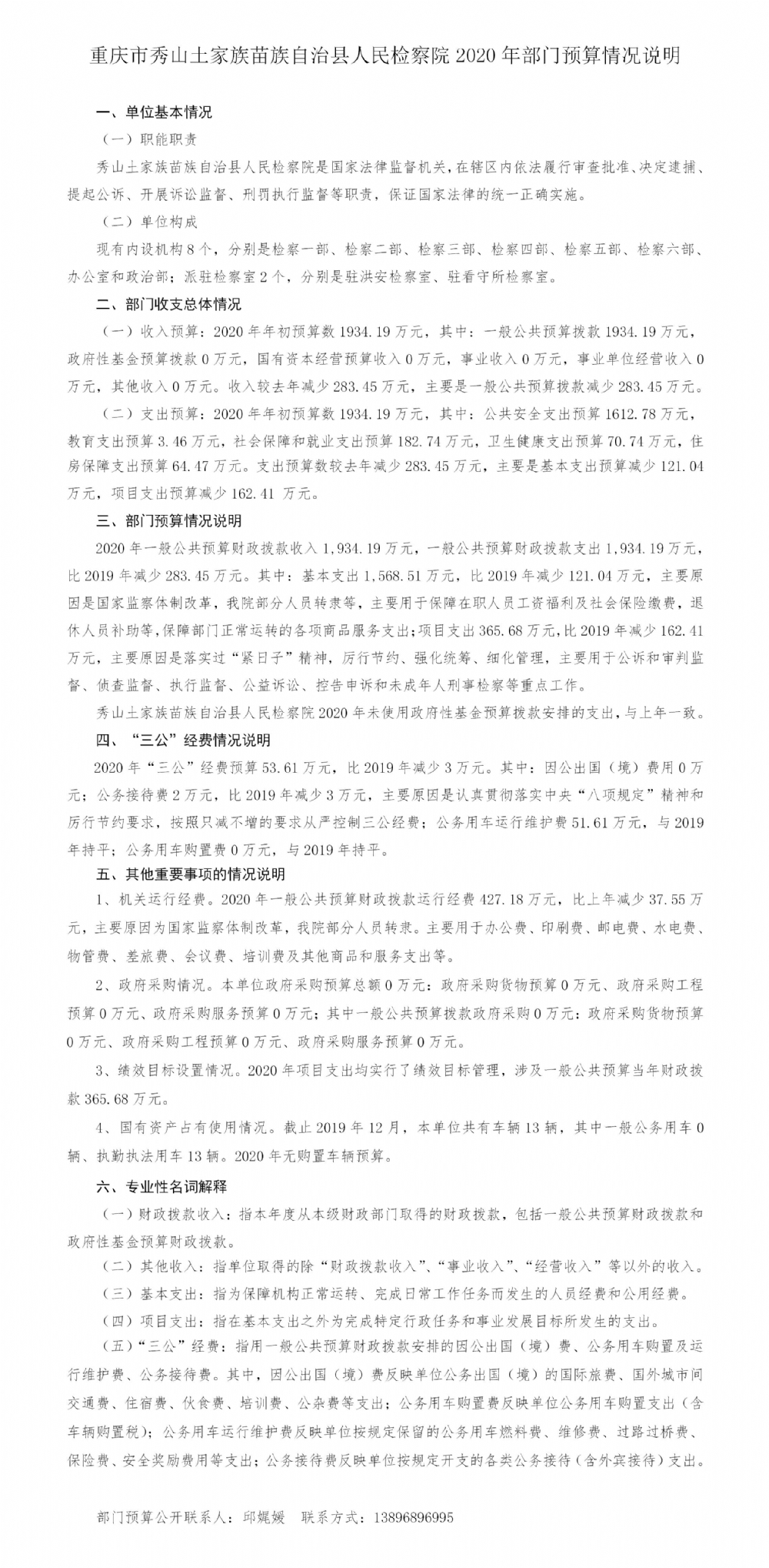 重庆市秀山土家族苗族自治县人民检察院2020年部门预算公开